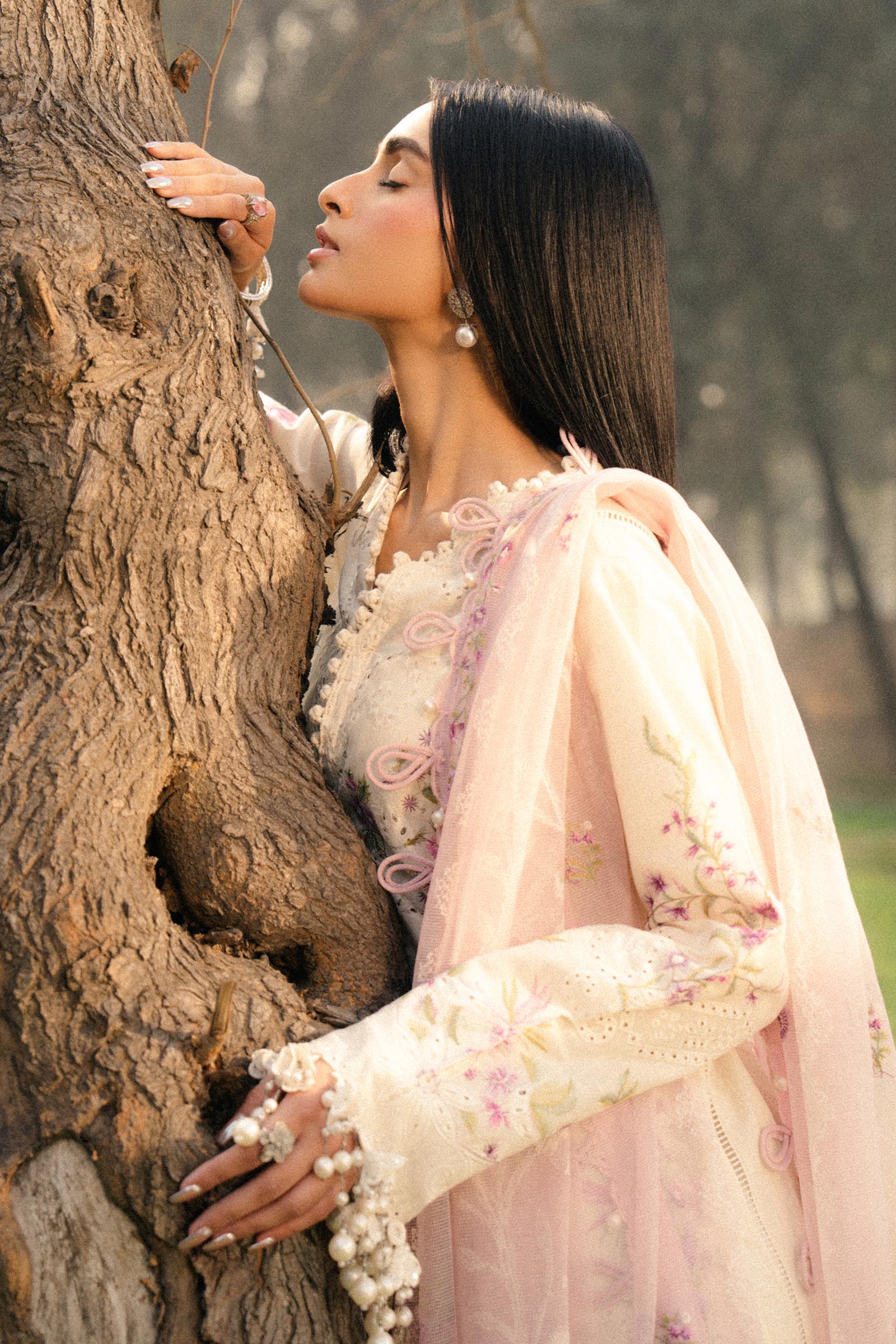 | Embroidered Schiffli Shirt Side Kali ( L+R) On Slub Lawn | 2 peices |