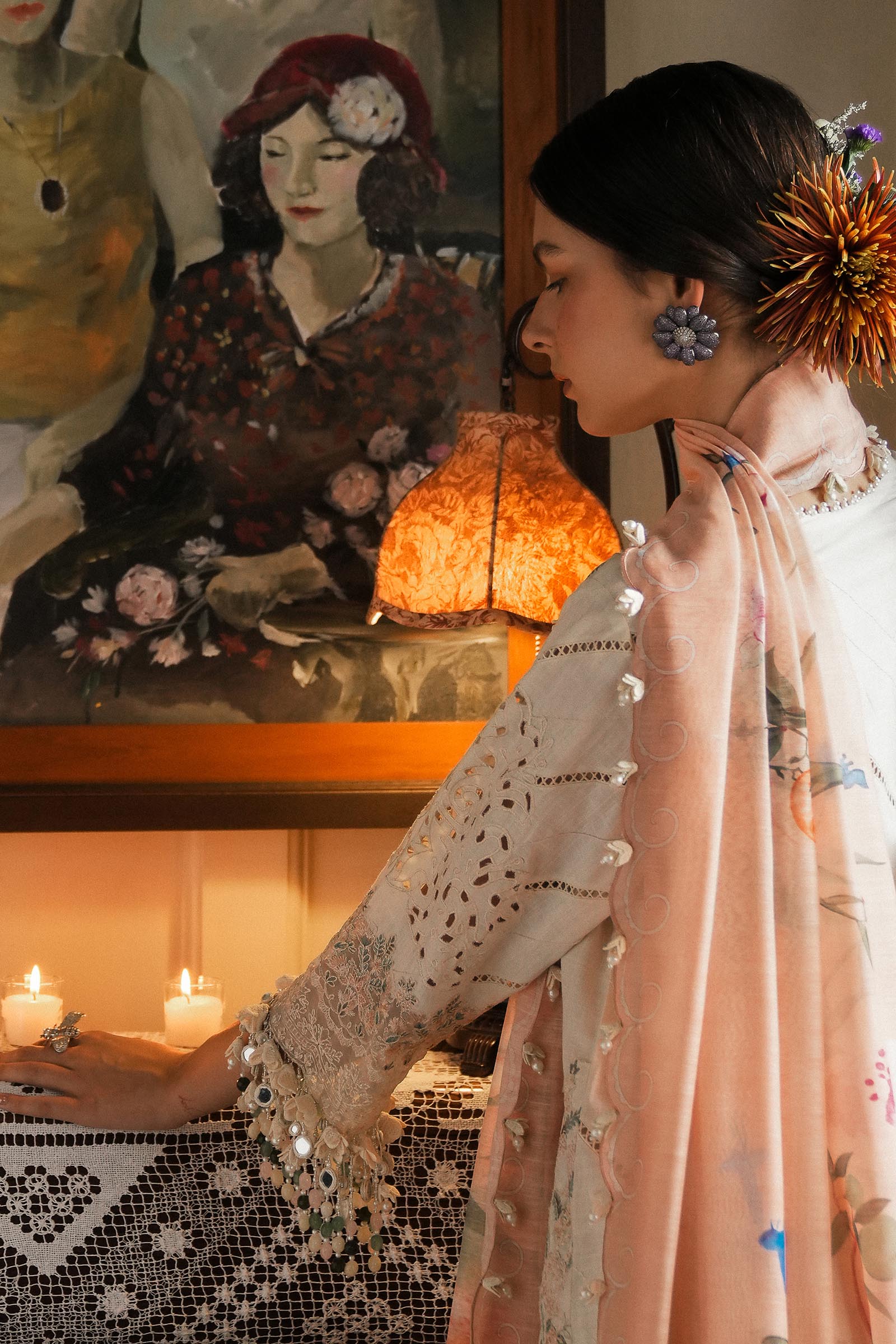 | Embrodiered Sleeves On Slub Lawn | 4 Peices |