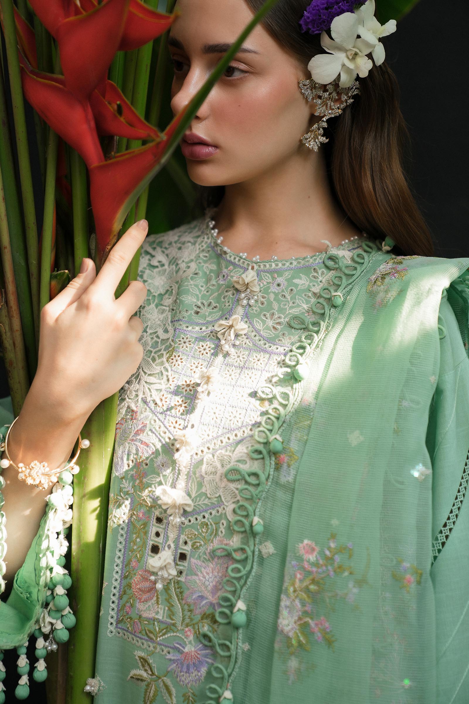 | Embroidered 3d Bunches On Organza | 13 Pieces |