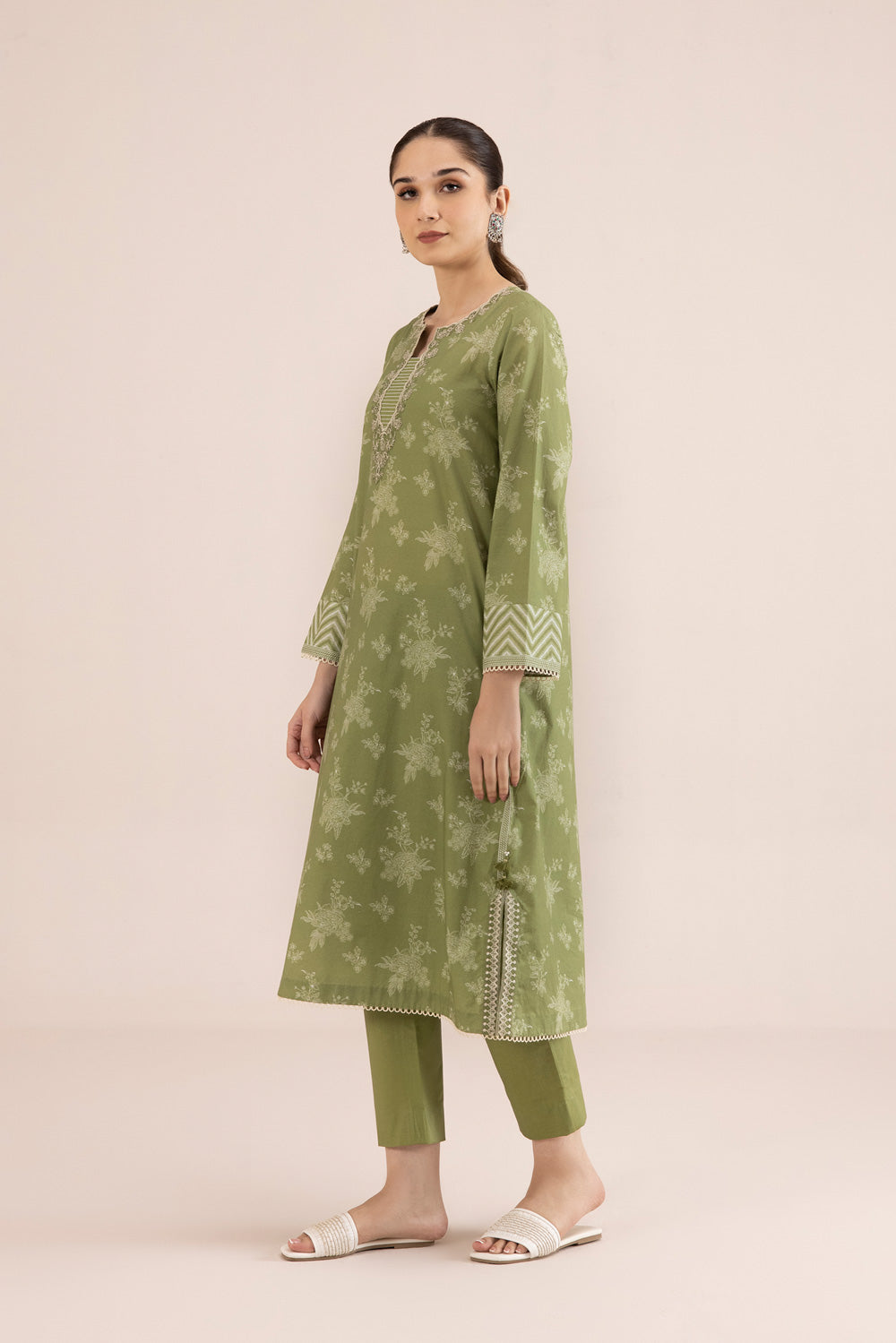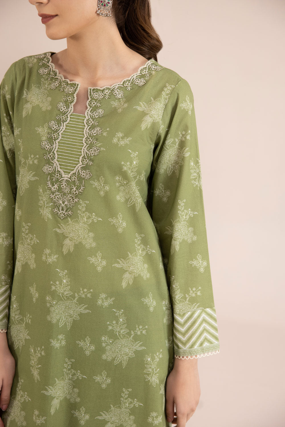 2 Piece - Embroidered Cambric Suit - Olive Green