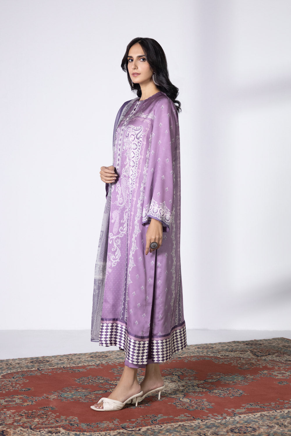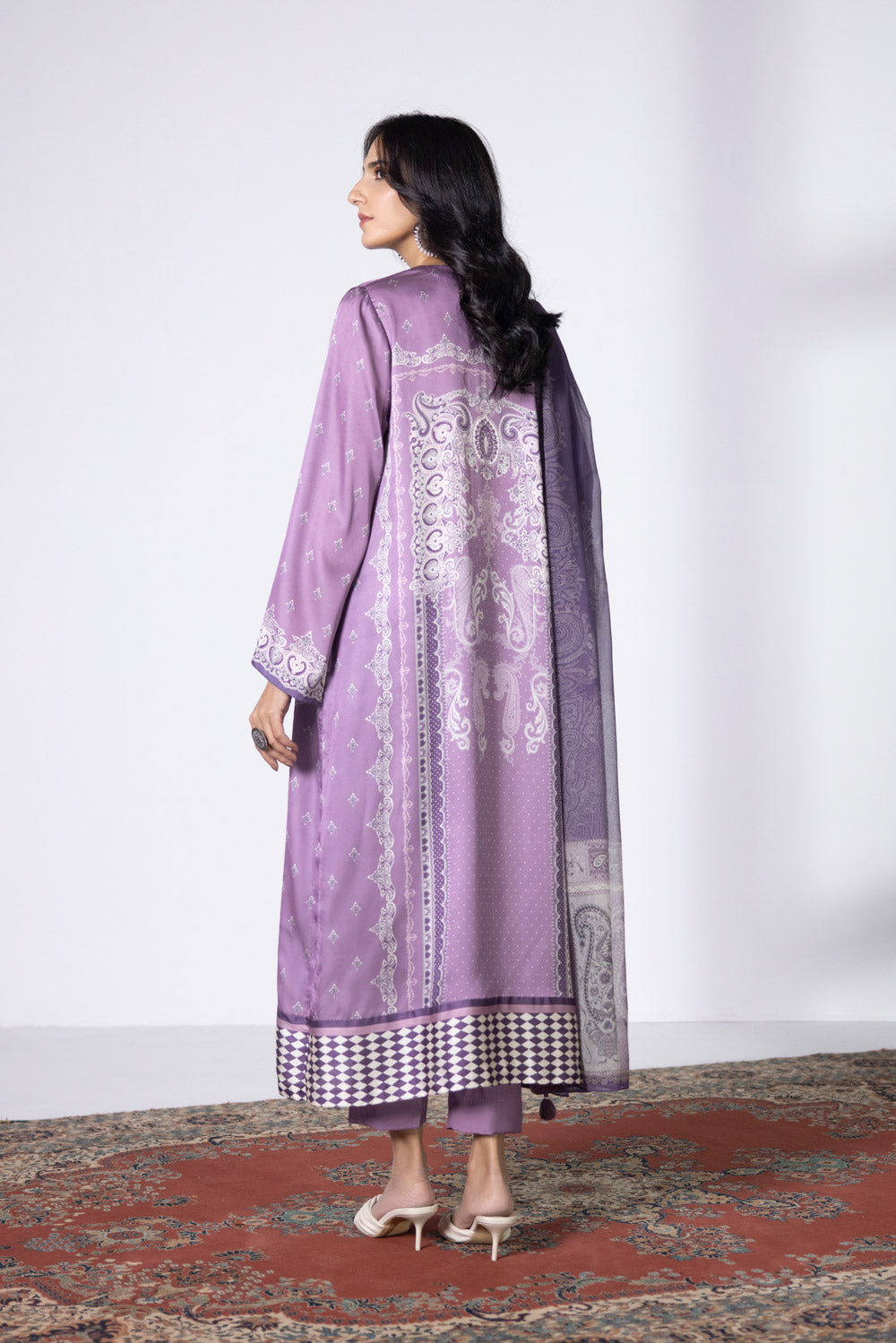 3 Piece - Printed Satin Suit - Lilac