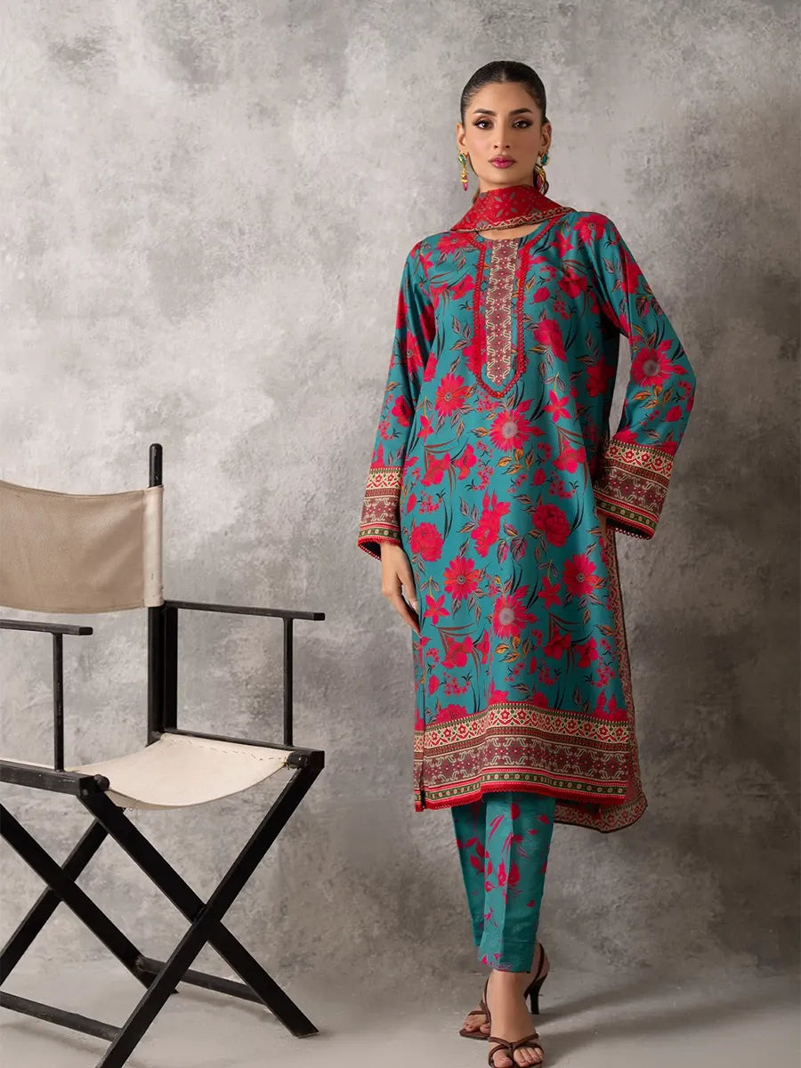 3pc Unstitched - Printed Lawn Silk Suit (ASI030)