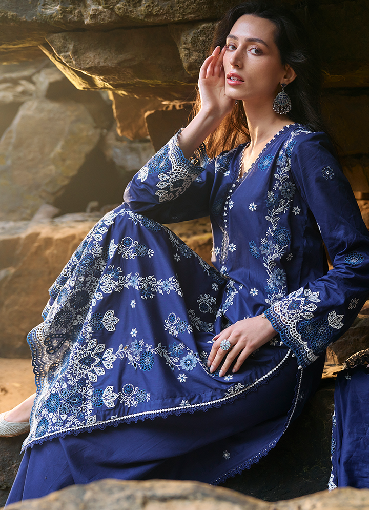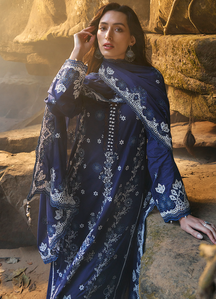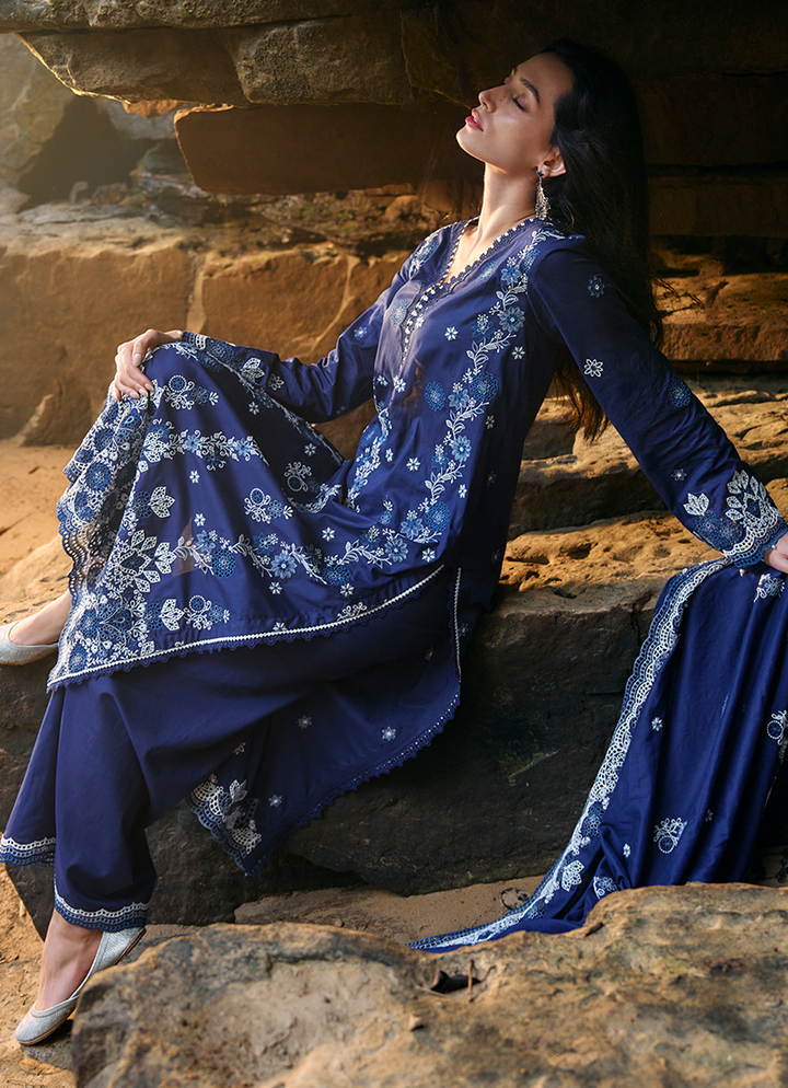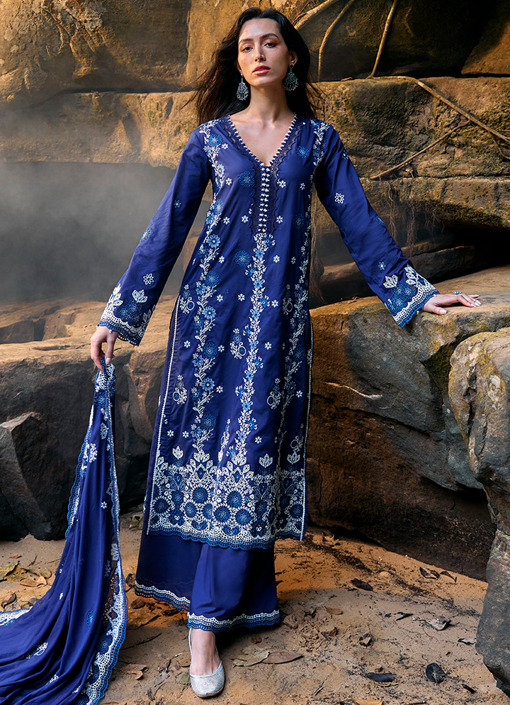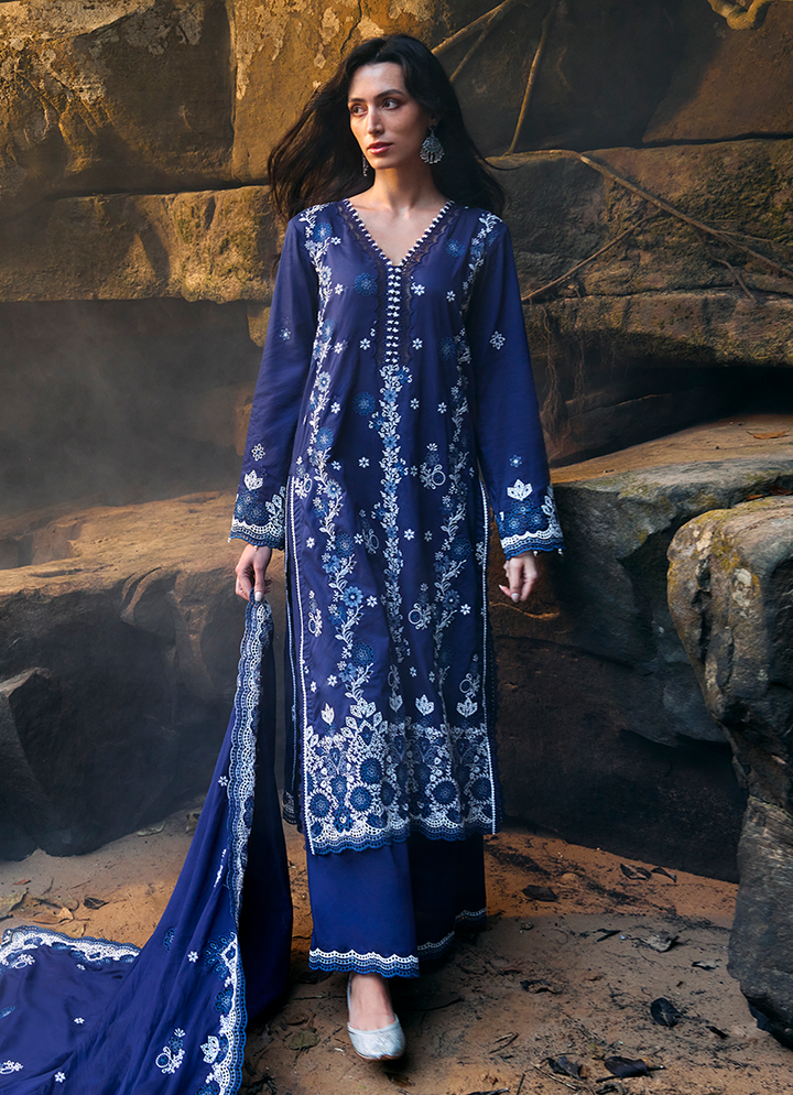 Three Piece Embroidered Suit With Embroidered Voile Dupatta