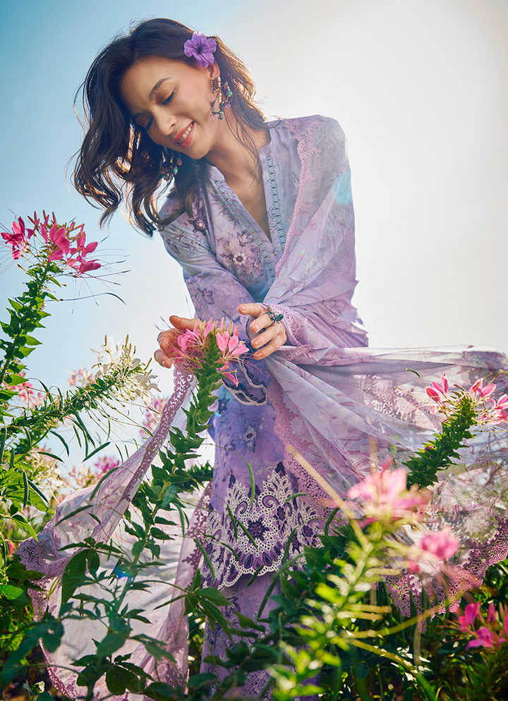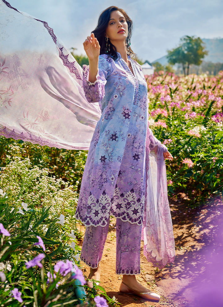 Three Piece Printed Embroidered Suit With Digital Printed Chiffon Dupatta