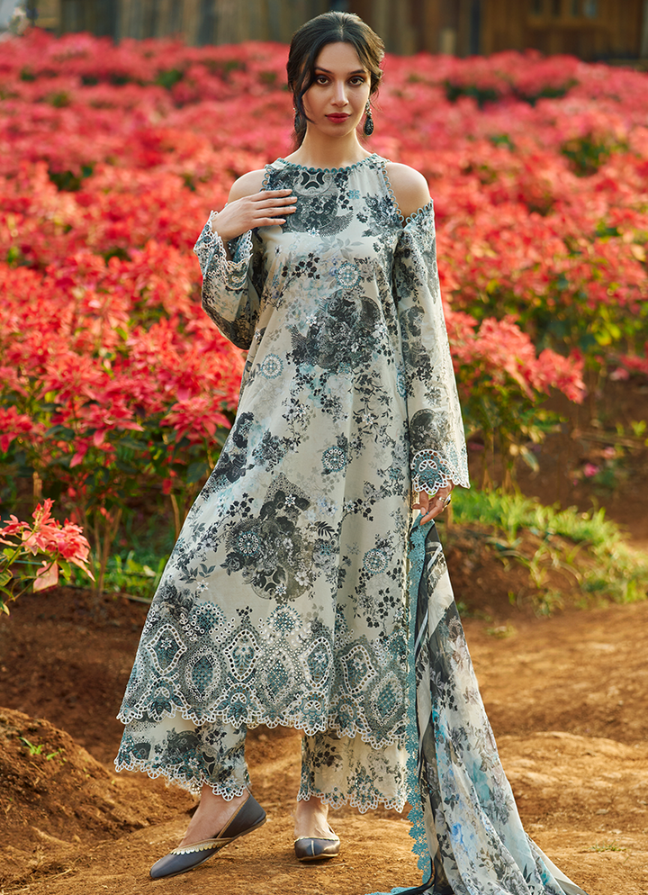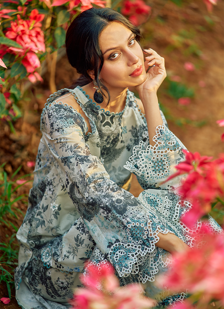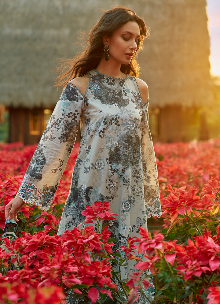 Three Piece Printed Embroidered Suit With Digital Printed Chiffon Dupatta