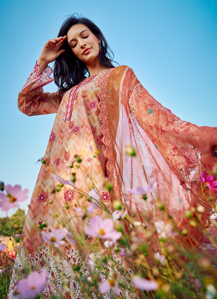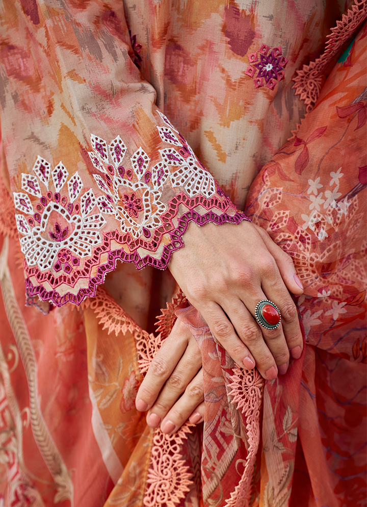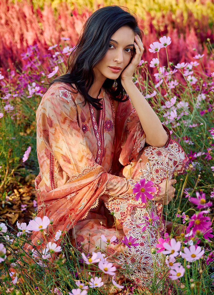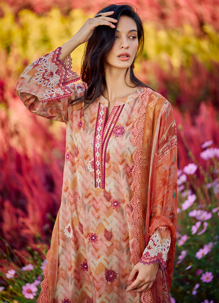 Three Piece Printed Embroidered Suit With Digital Printed Chiffon Dupatta