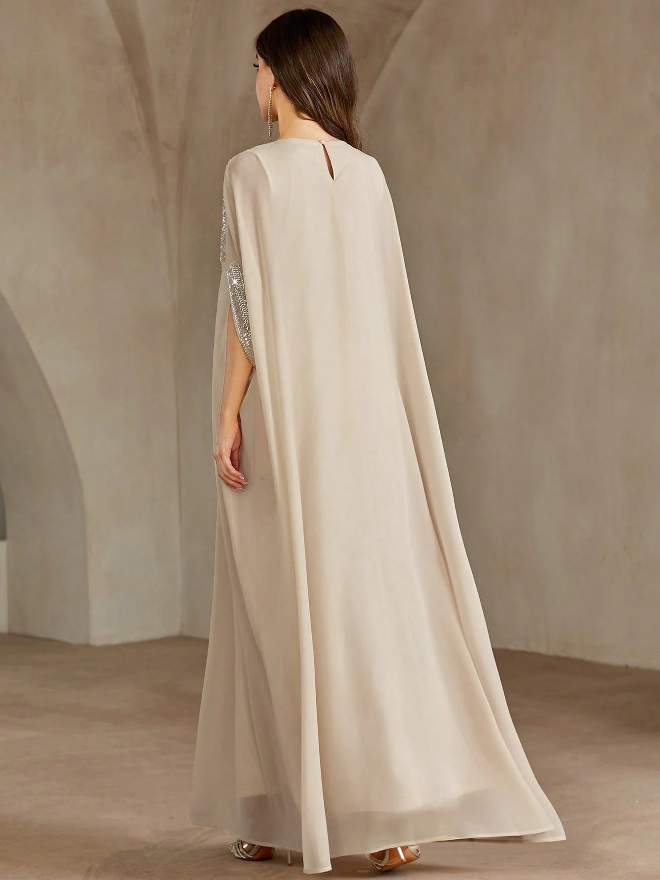 Round Neck Embellished Floral Collar And Rhinestones Kaftan