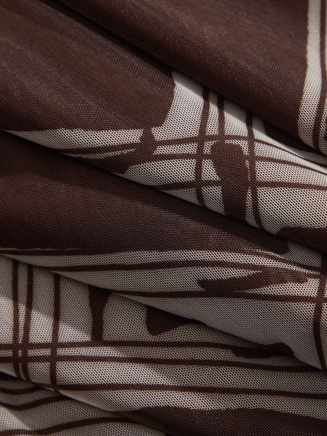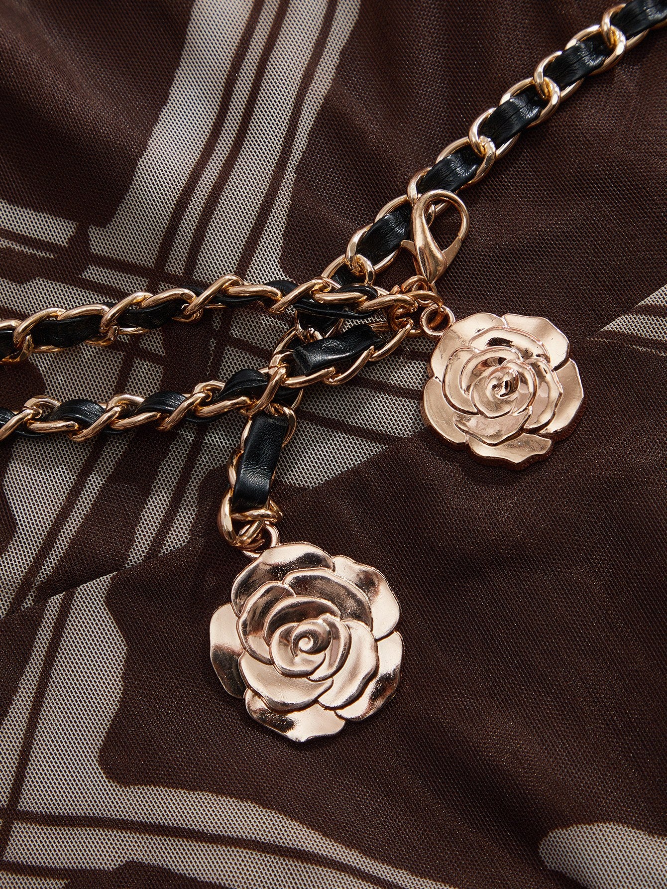 Brown Waist Cinched Graphic Print Flared Dress With Belt