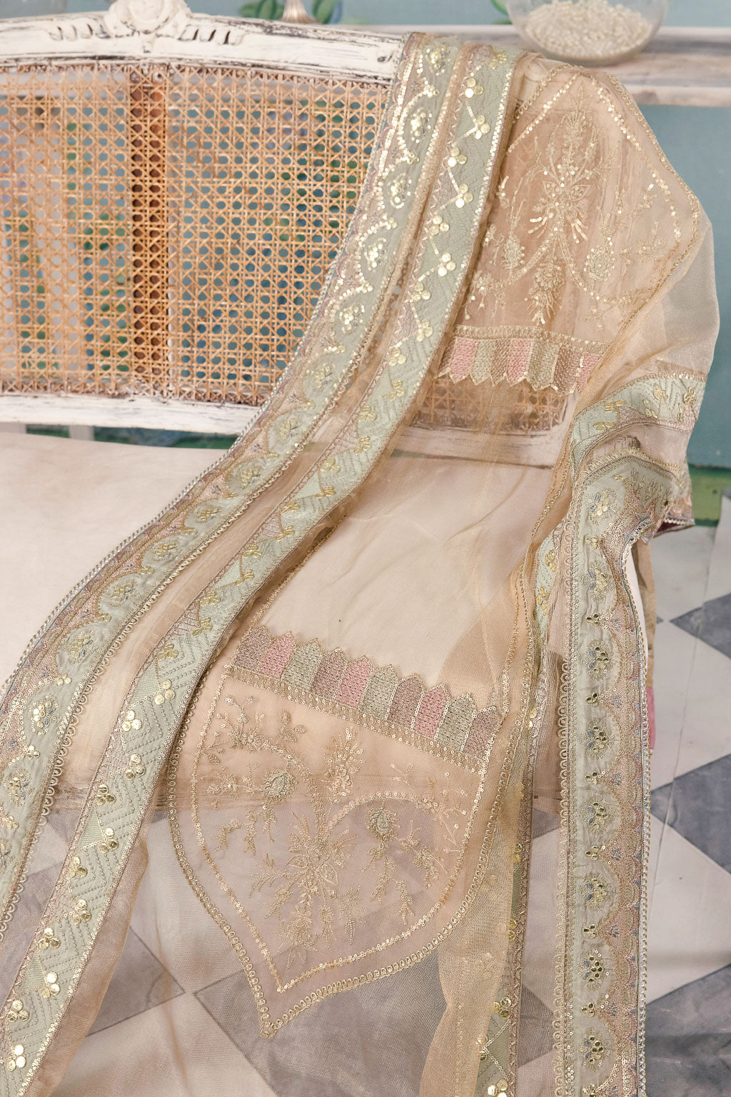 Dupatta: Embroidered Pure Zari Net (2.75 y)