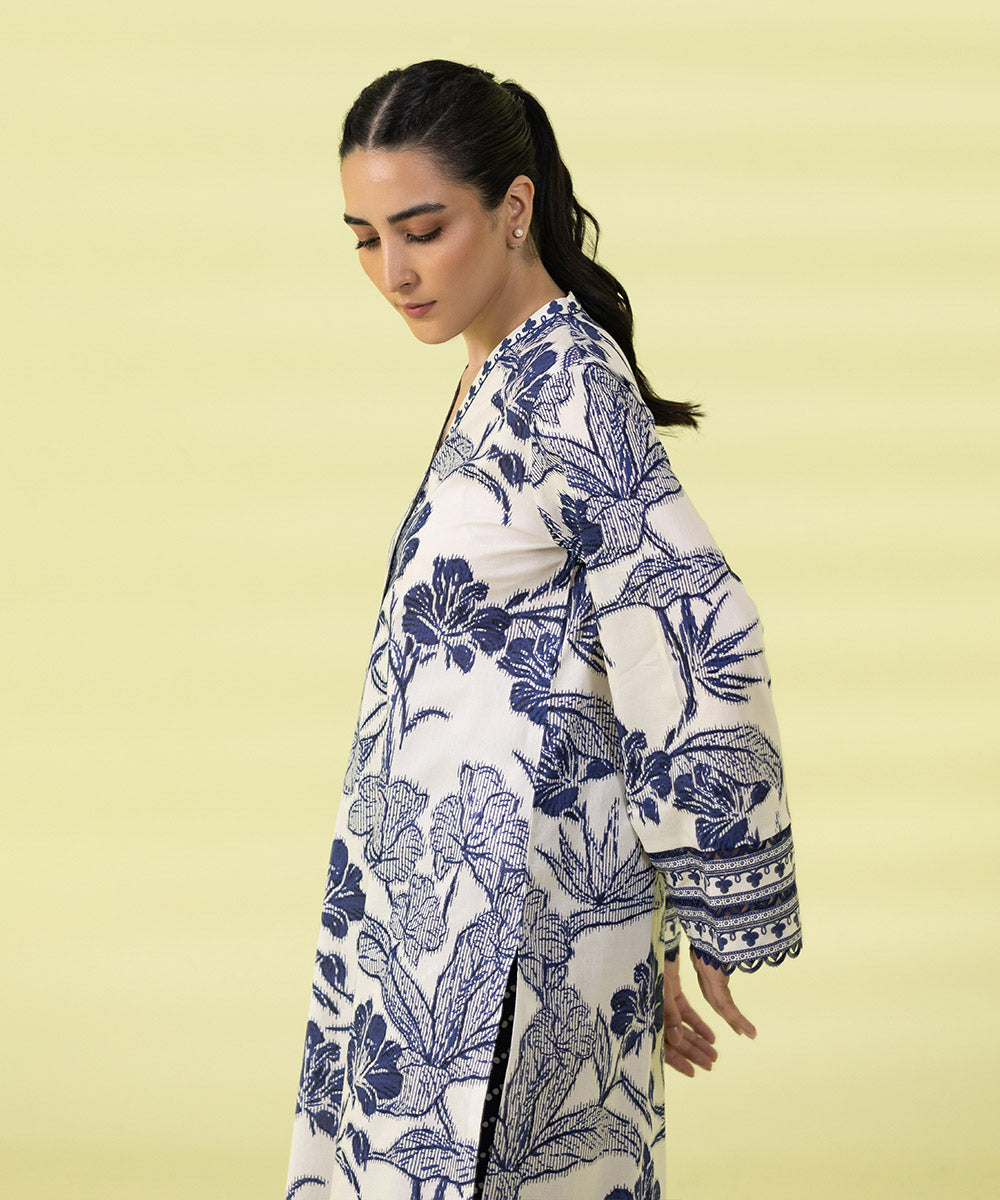PRINTED LAWN SUIT - Indigo Blue and Off white