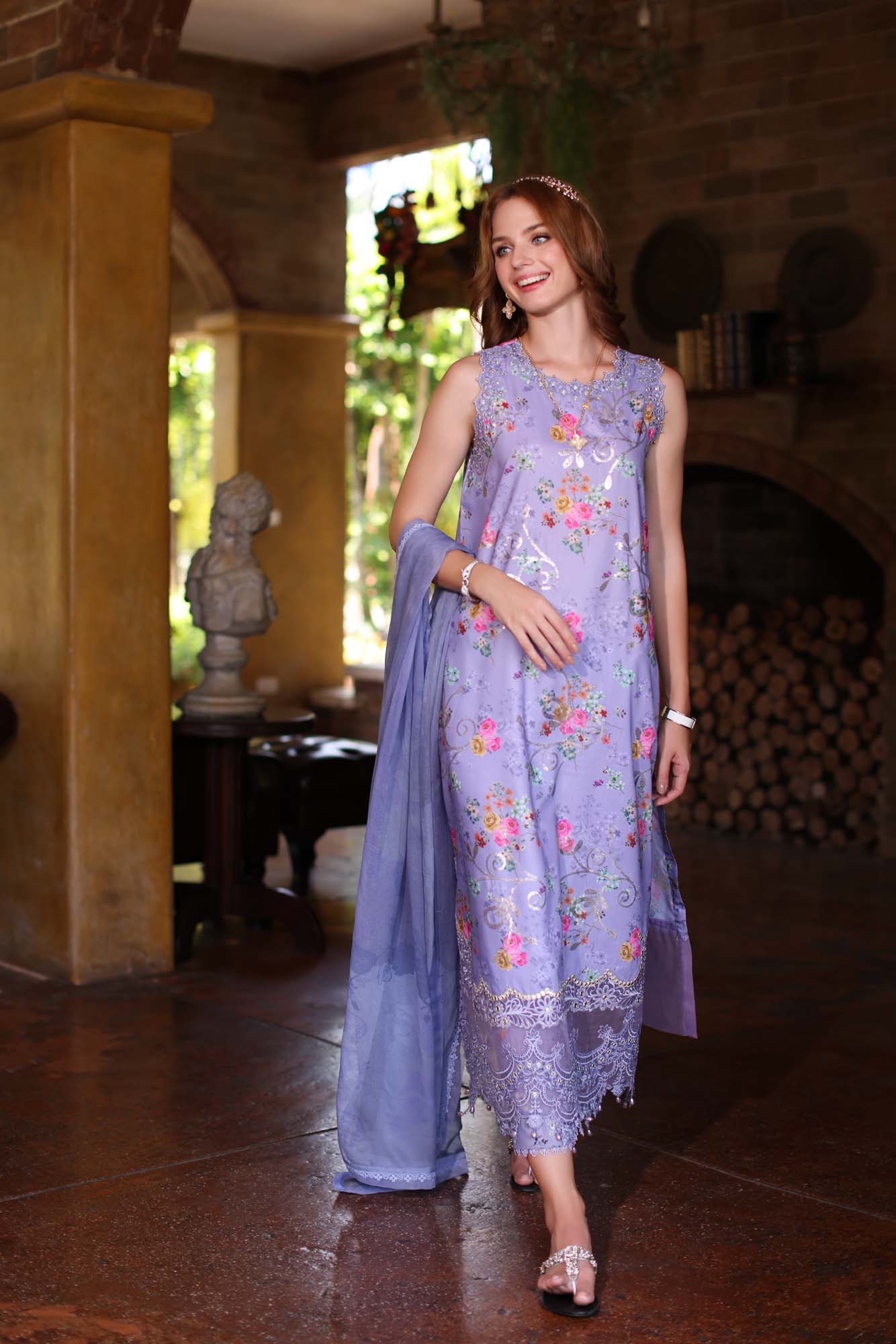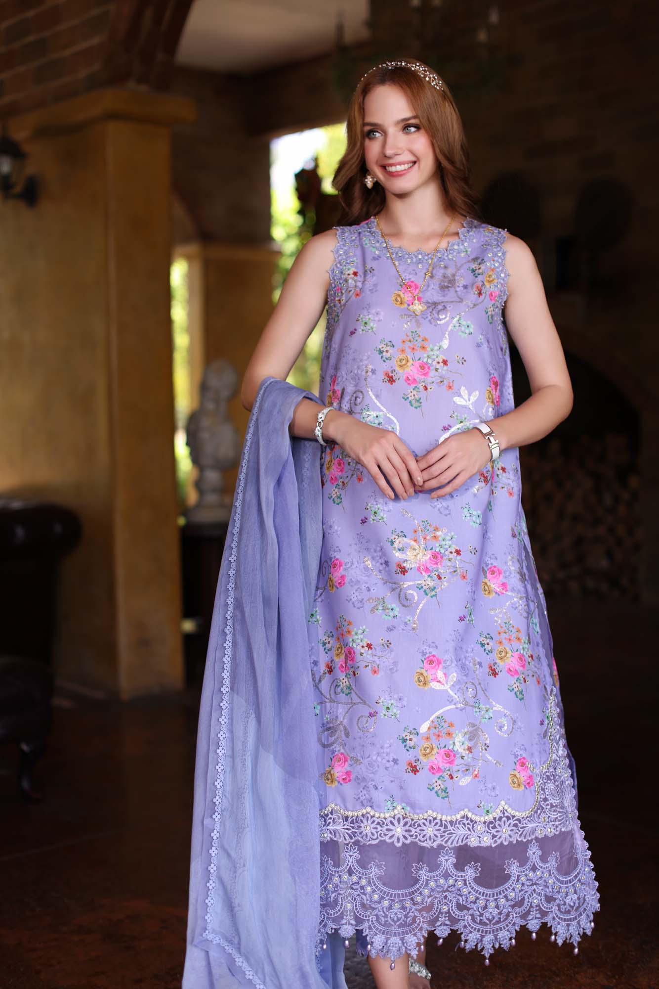 Front: Sequin embroidered digital printed lawn