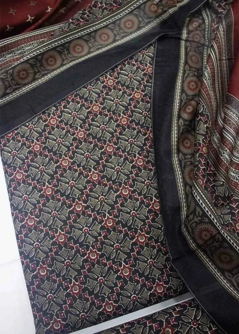 3 Piece MultiColor Cotton Printed UnStitched Suit with Printed Dupatta & Printed Trouser.