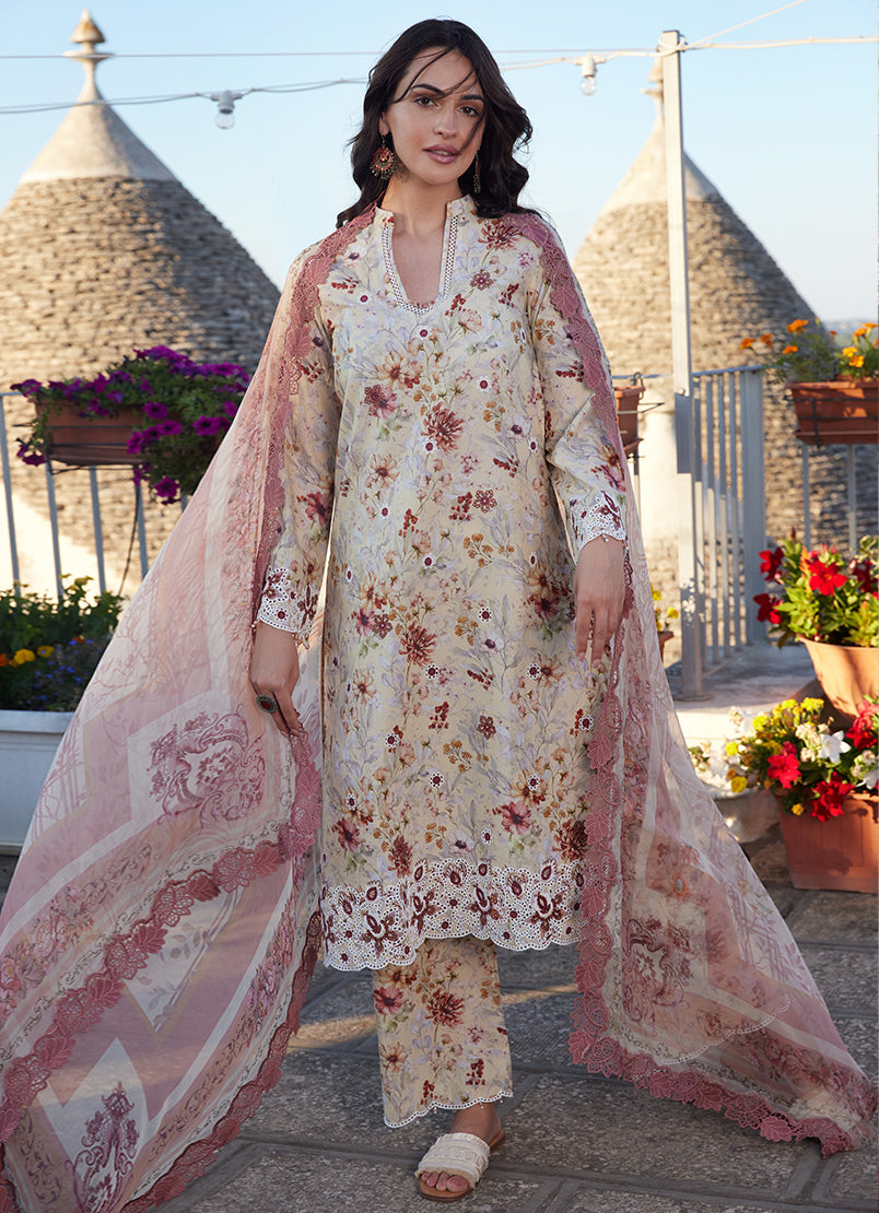 Printed unstitched 3-piece outfit