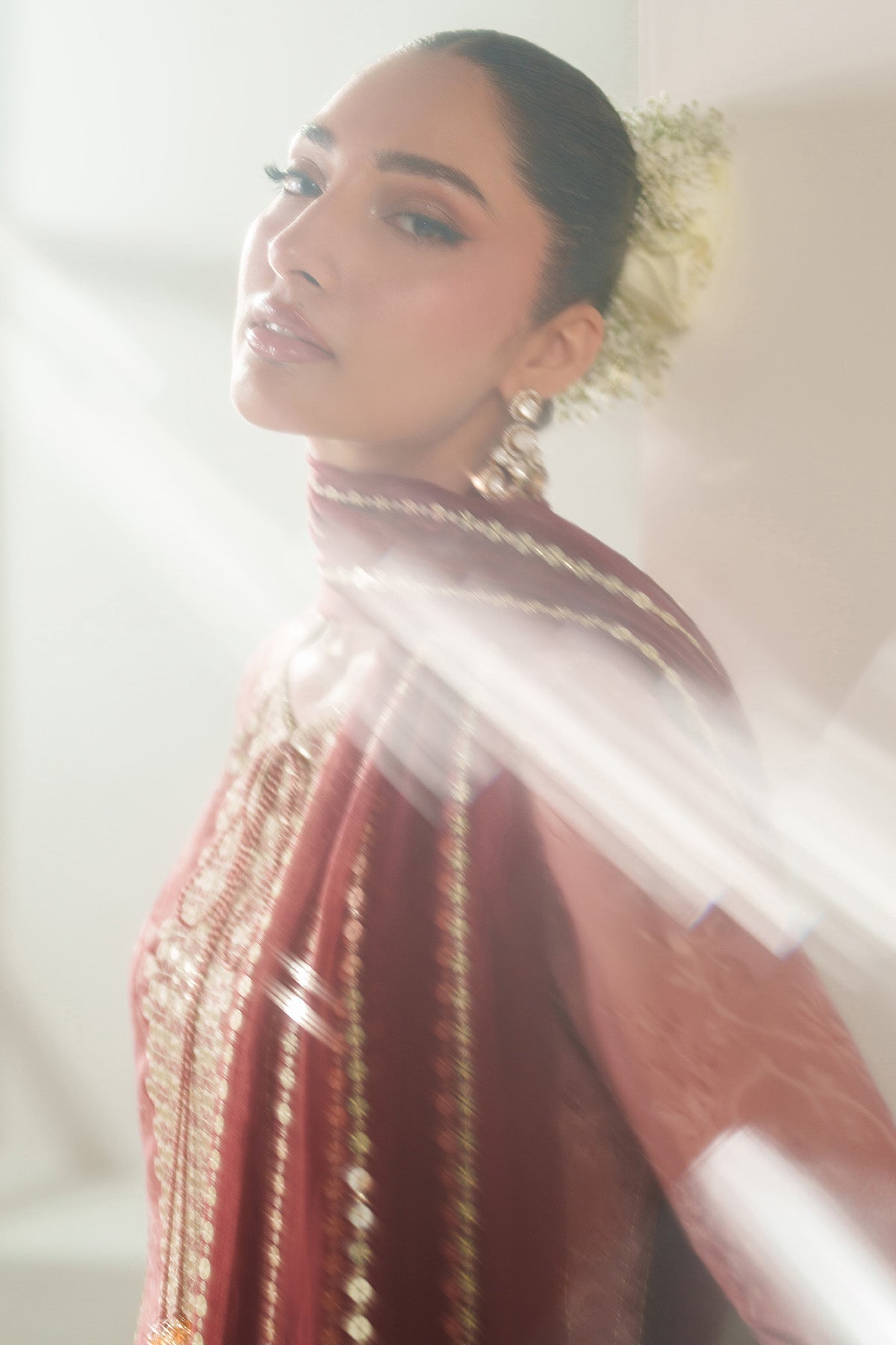 This exquisite embroidered chiffon ensemble features a digitally printed front panel paired with delicately printed chiffon side panels, sleeves, and back, creating a harmonious blend of texture and design. The intricate embroidery adorns the front, back, and sleeve borders, enhancing its refined elegance. Complemented by an embroidered chiffon dupatta and a dyed raw silk bottom, this outfit offers a sophisticated and luxurious appeal suitable for discerning tastes.