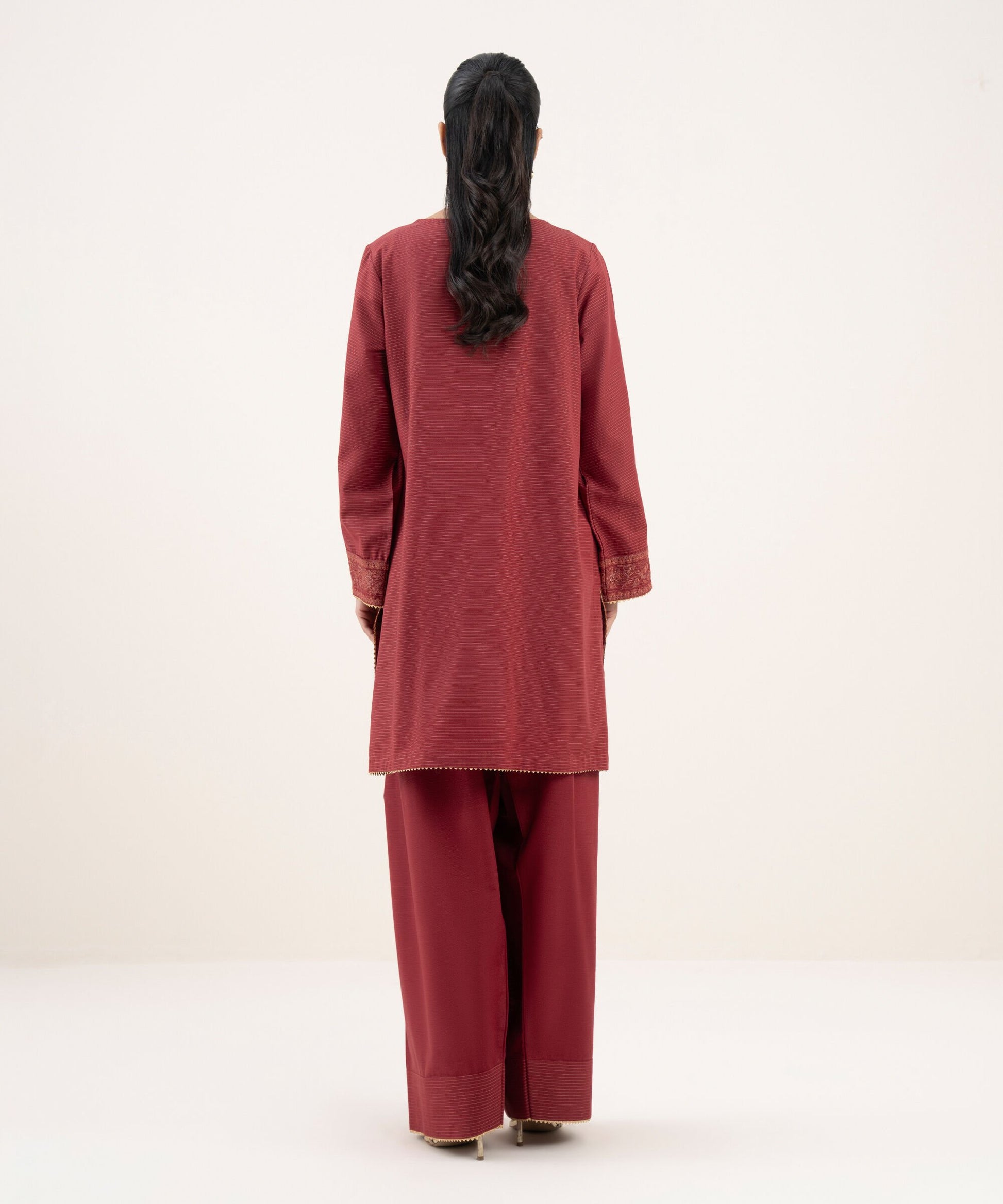 Dyed With Embroidered Front Panel, Dyed Back Panel, Round Neckline, Full Sleeves, Short Length