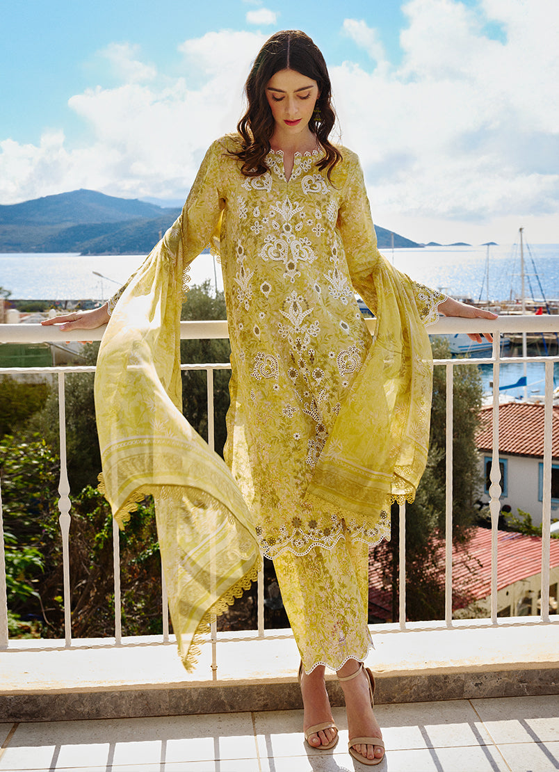 Printed cotton embroidered trouser