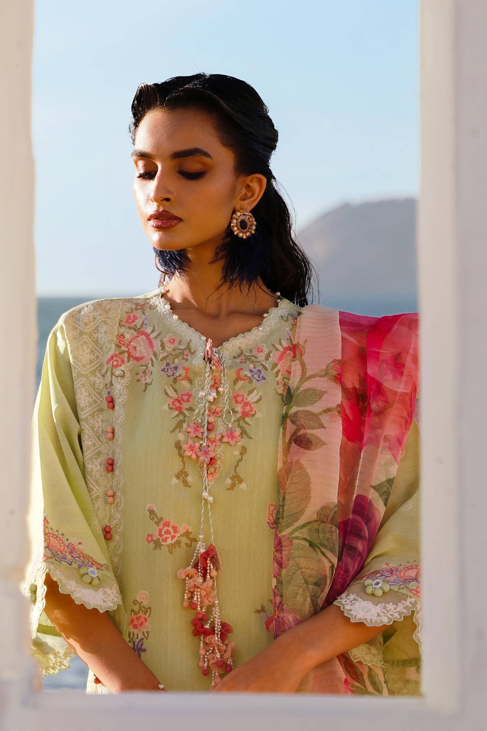 | Front Embroidered Kali On Chambray | 3 Pieces |