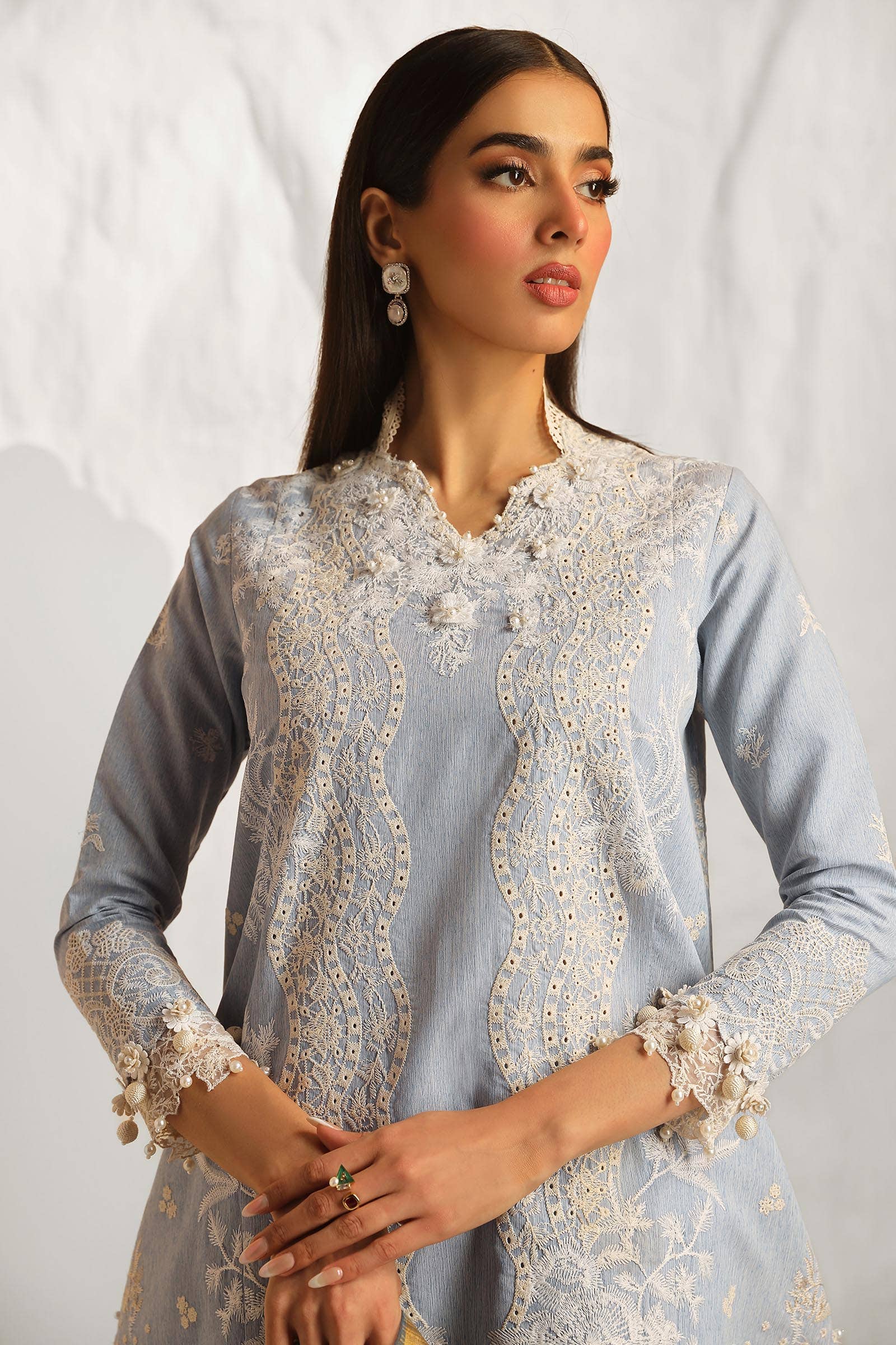 | Embroidered Sleeves On Chambray | 0.65 Meters |