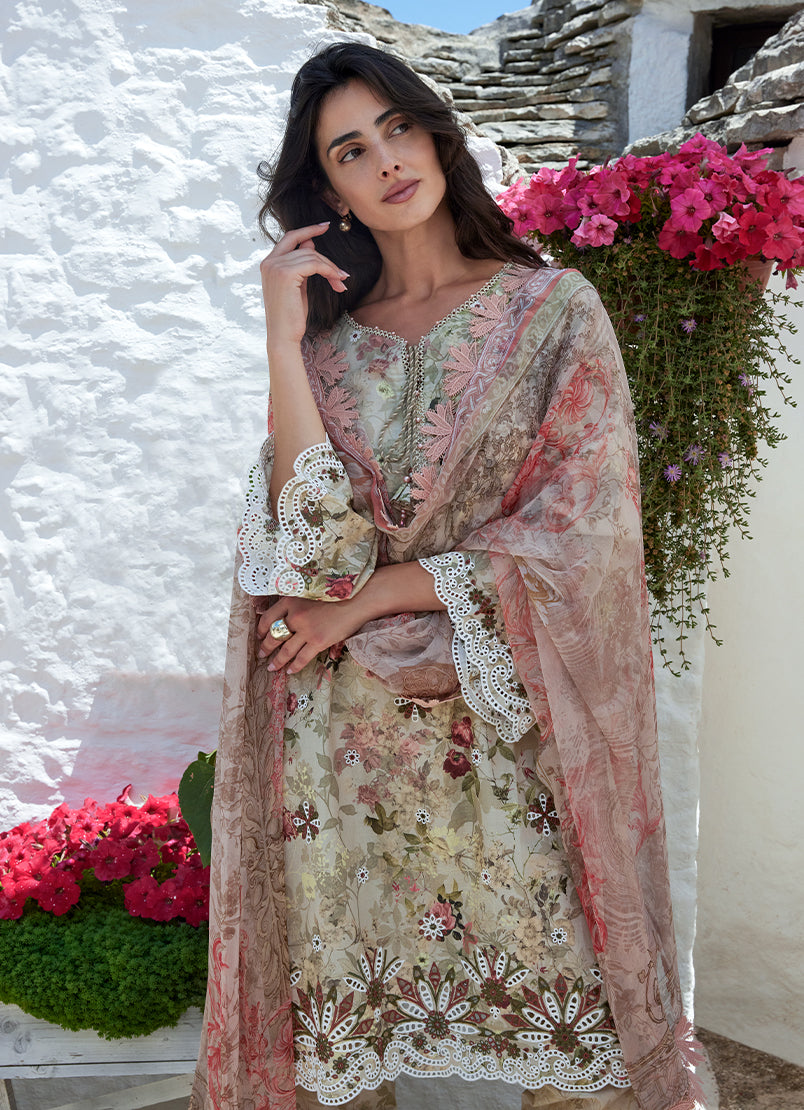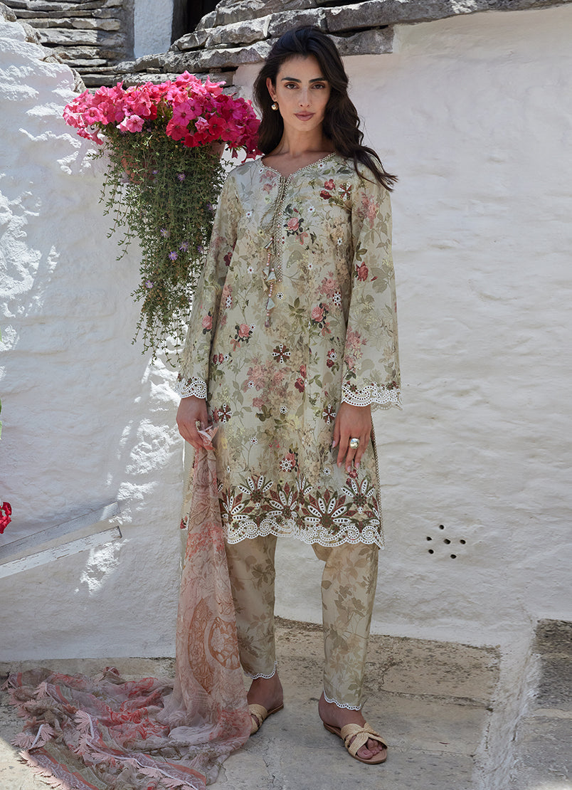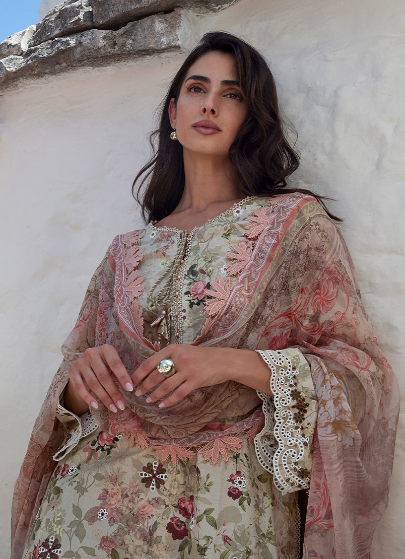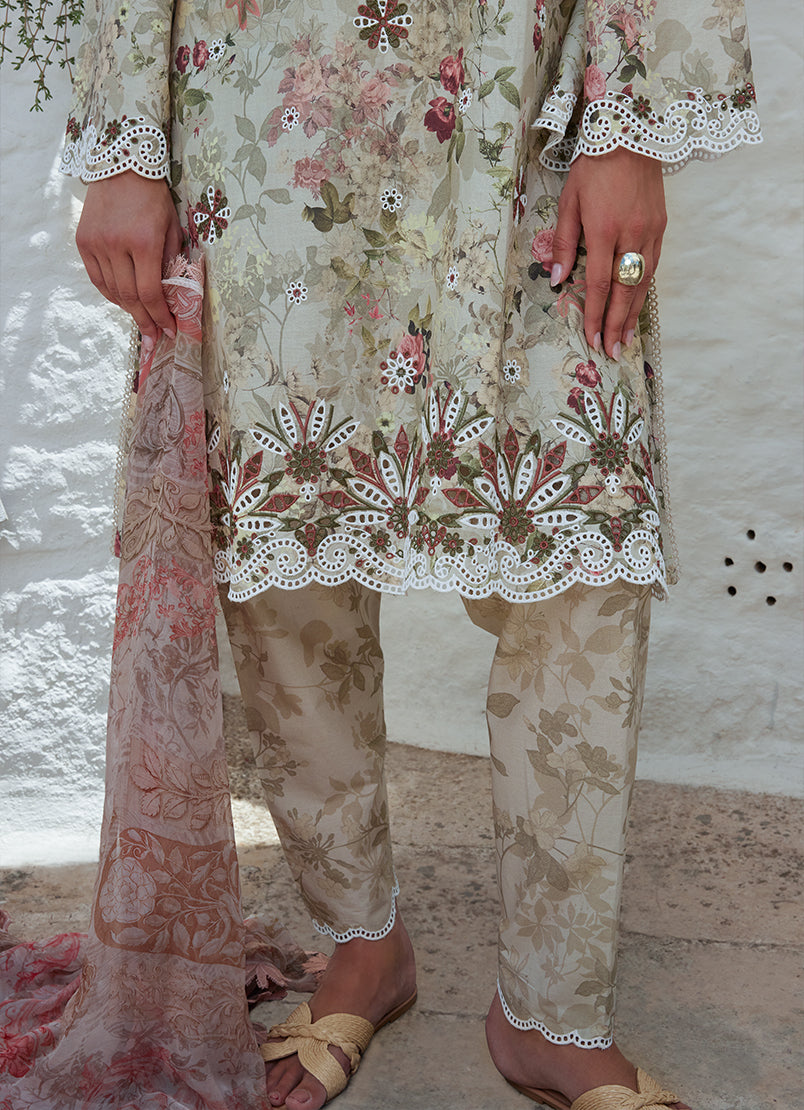 Schiffli-embroidered daaman, sleeves and pants with scalloped edging