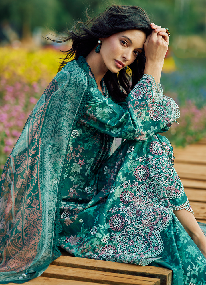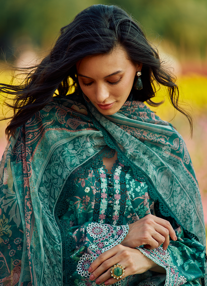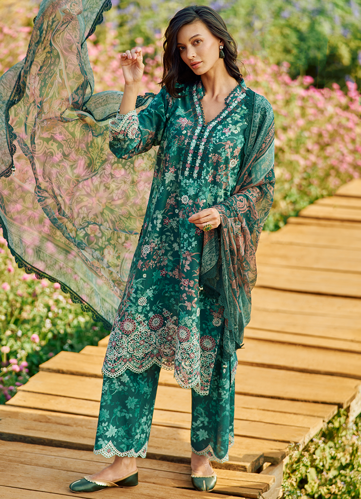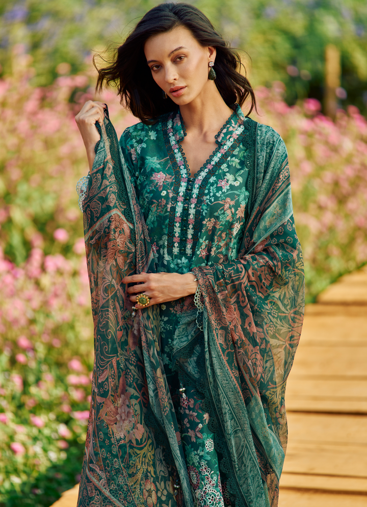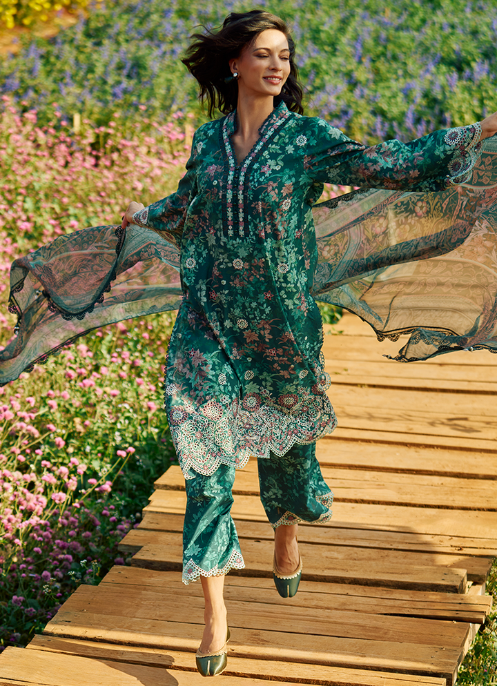 Three Piece Printed Embroidered Suit With Digital Printed Chiffon Dupatta