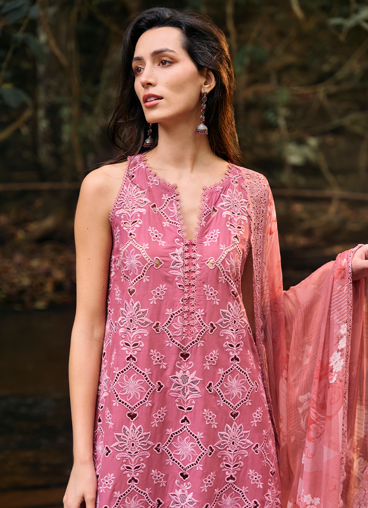 Three Piece Embroidered Suit With Digital Printed Chiffon Dupatta