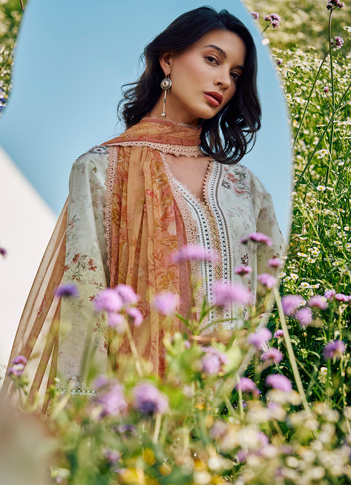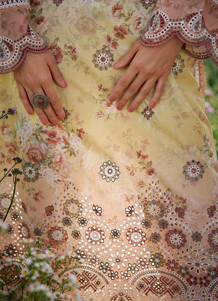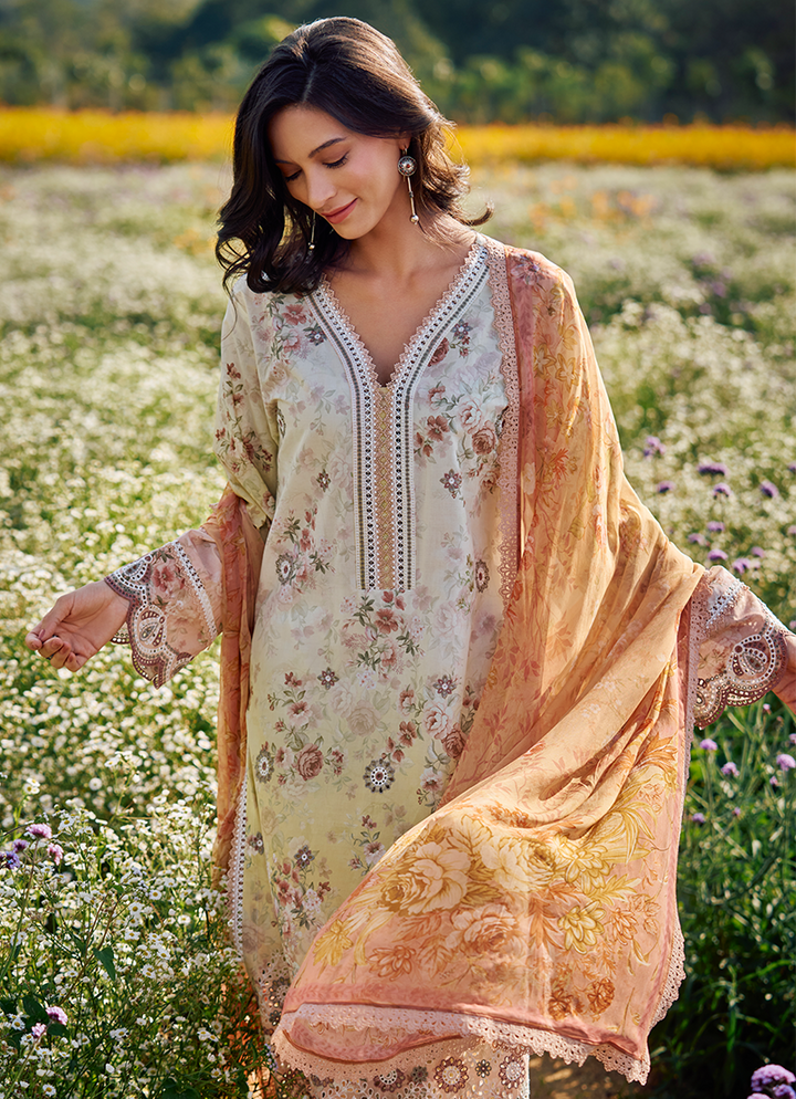 Three Piece Printed Embroidered Suit With Digital Printed Chiffon Dupatta