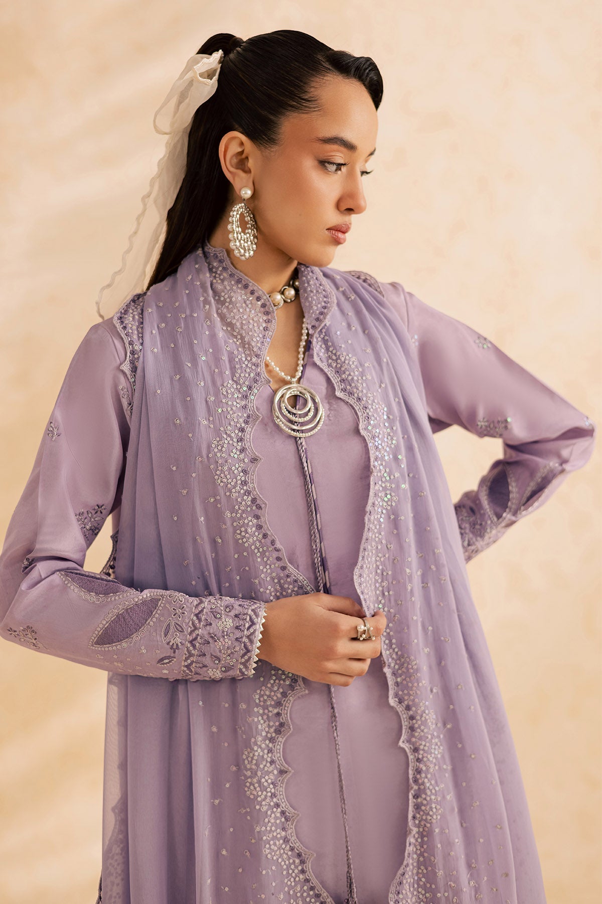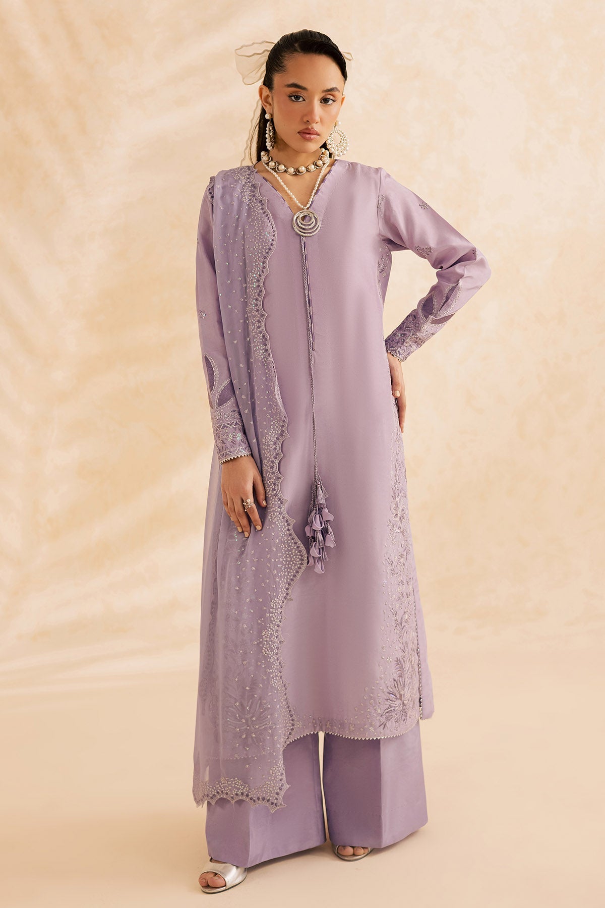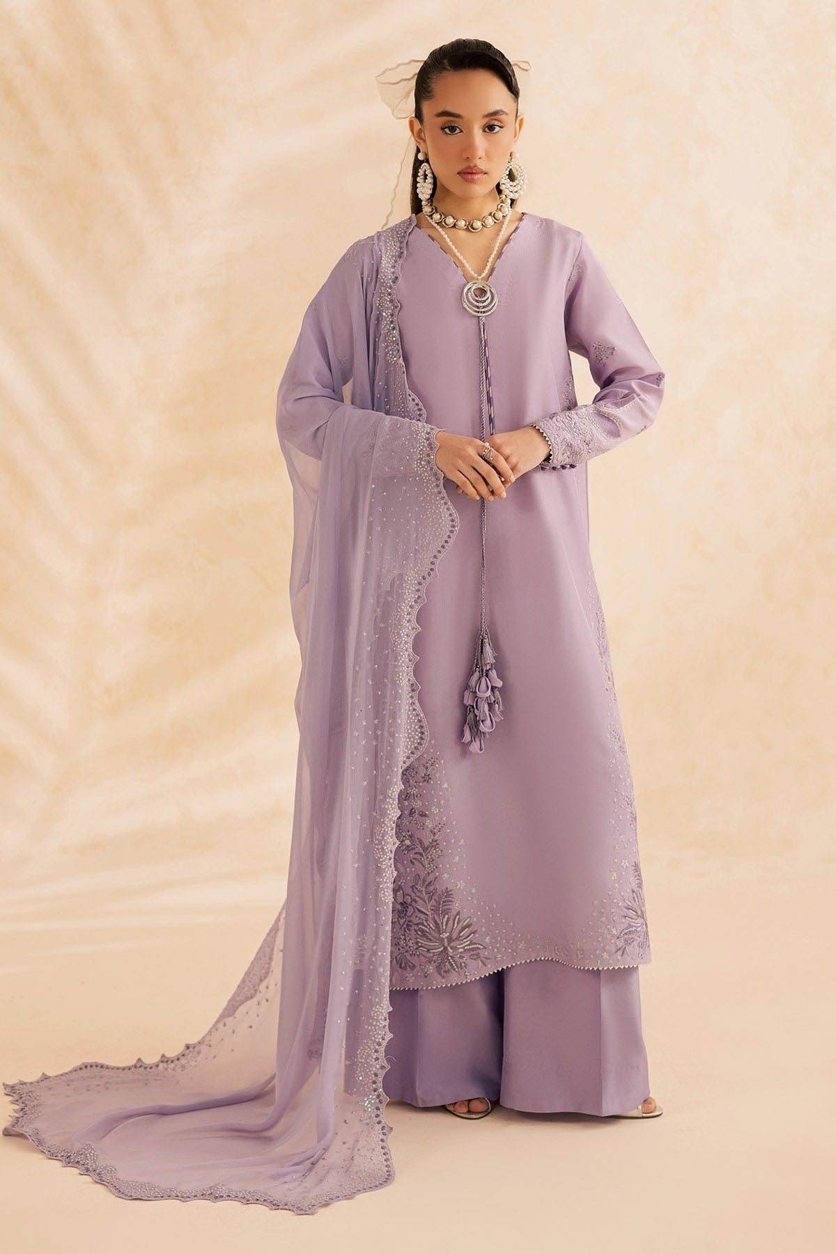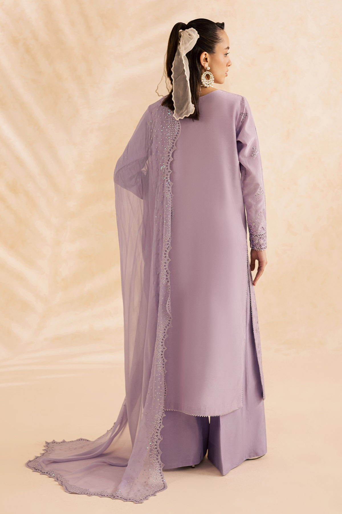 EMBROIDERED CHARMEUSE SILK SHIRT PAIRED WITH EMBROIDERED CHIFFON DUPATTA AND DYED SILK TROUSER