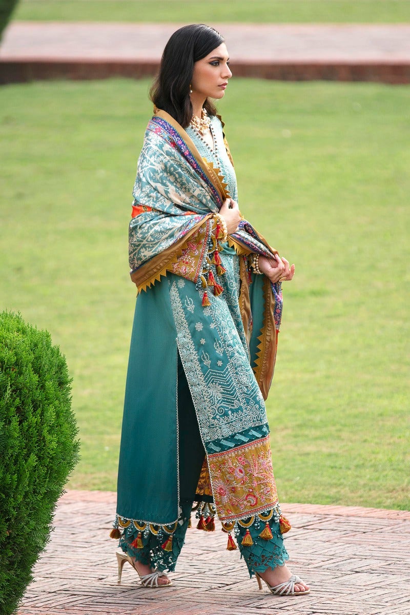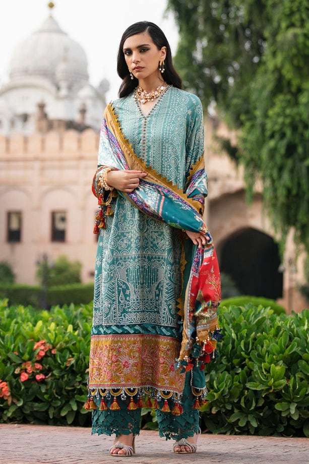 | Tie & Dyed Digital Printed + Emb sleeves on Raw silk | |