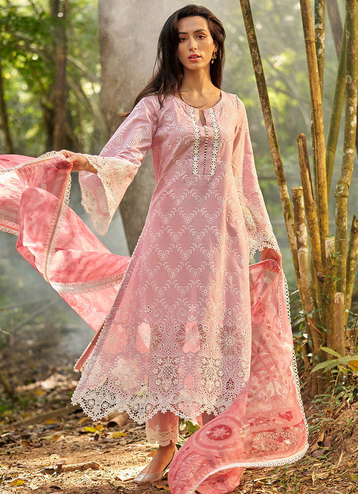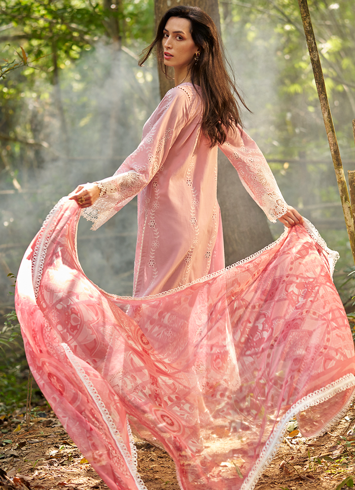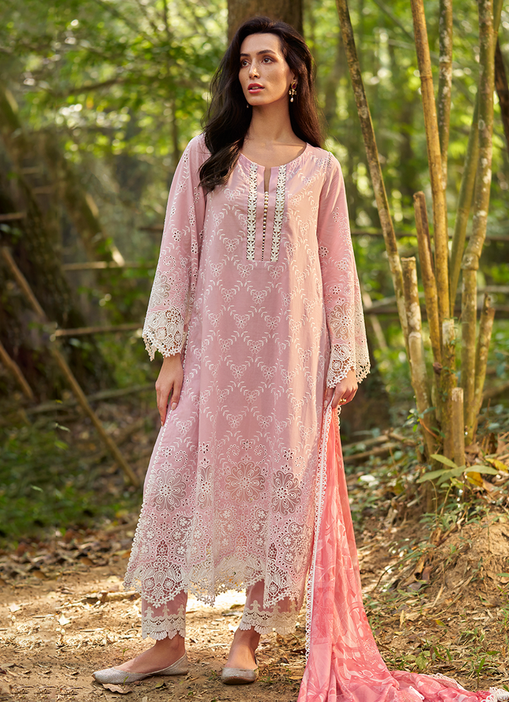 Three Piece Embroidered Suit With Digital Printed Chiffon Dupatta