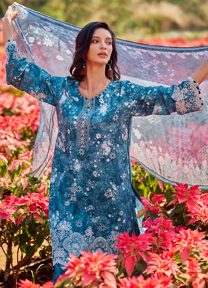Three Piece Printed Embroidered Suit With Digital Printed Chiffon Dupatta