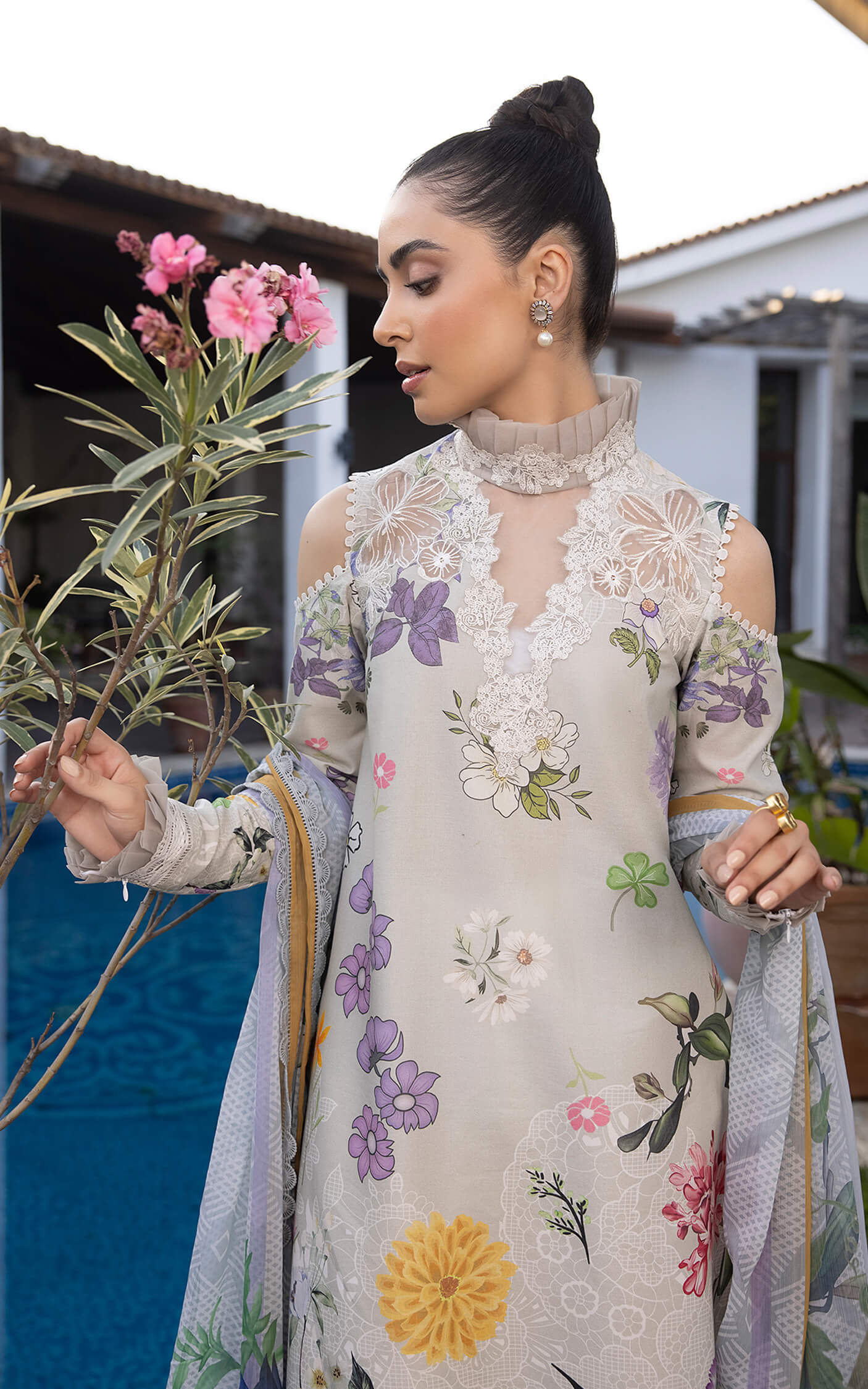 - Embroidered shoulder motifs for front on organza.