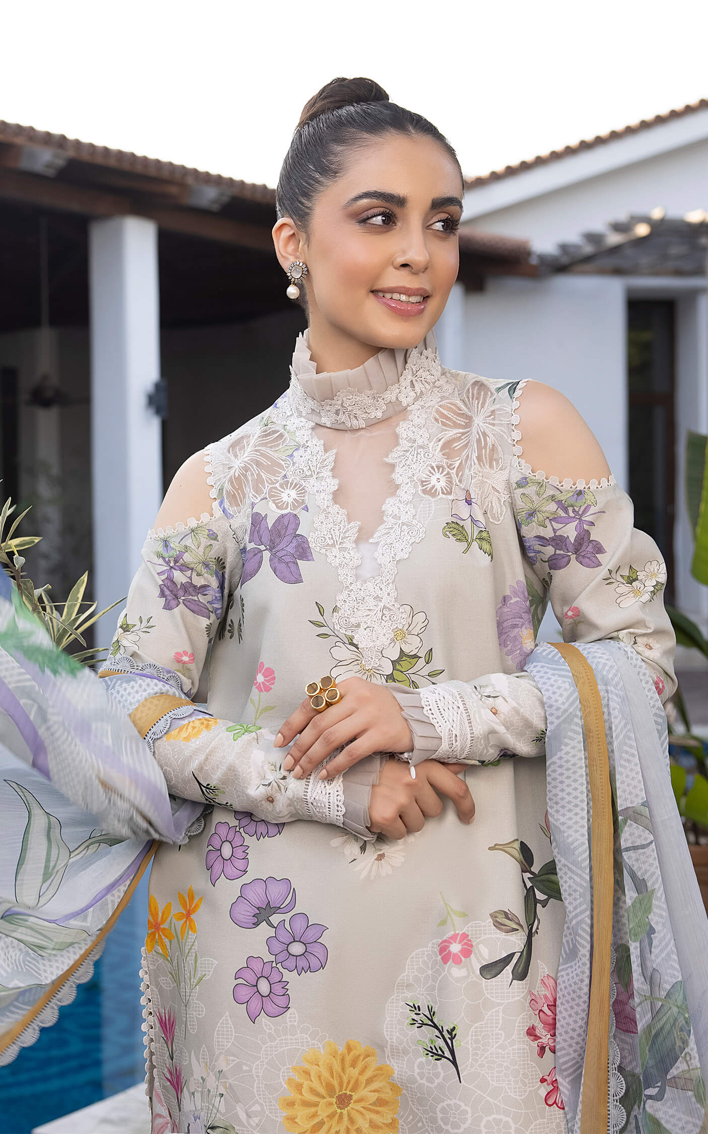 - Digital printed dupatta on silk.