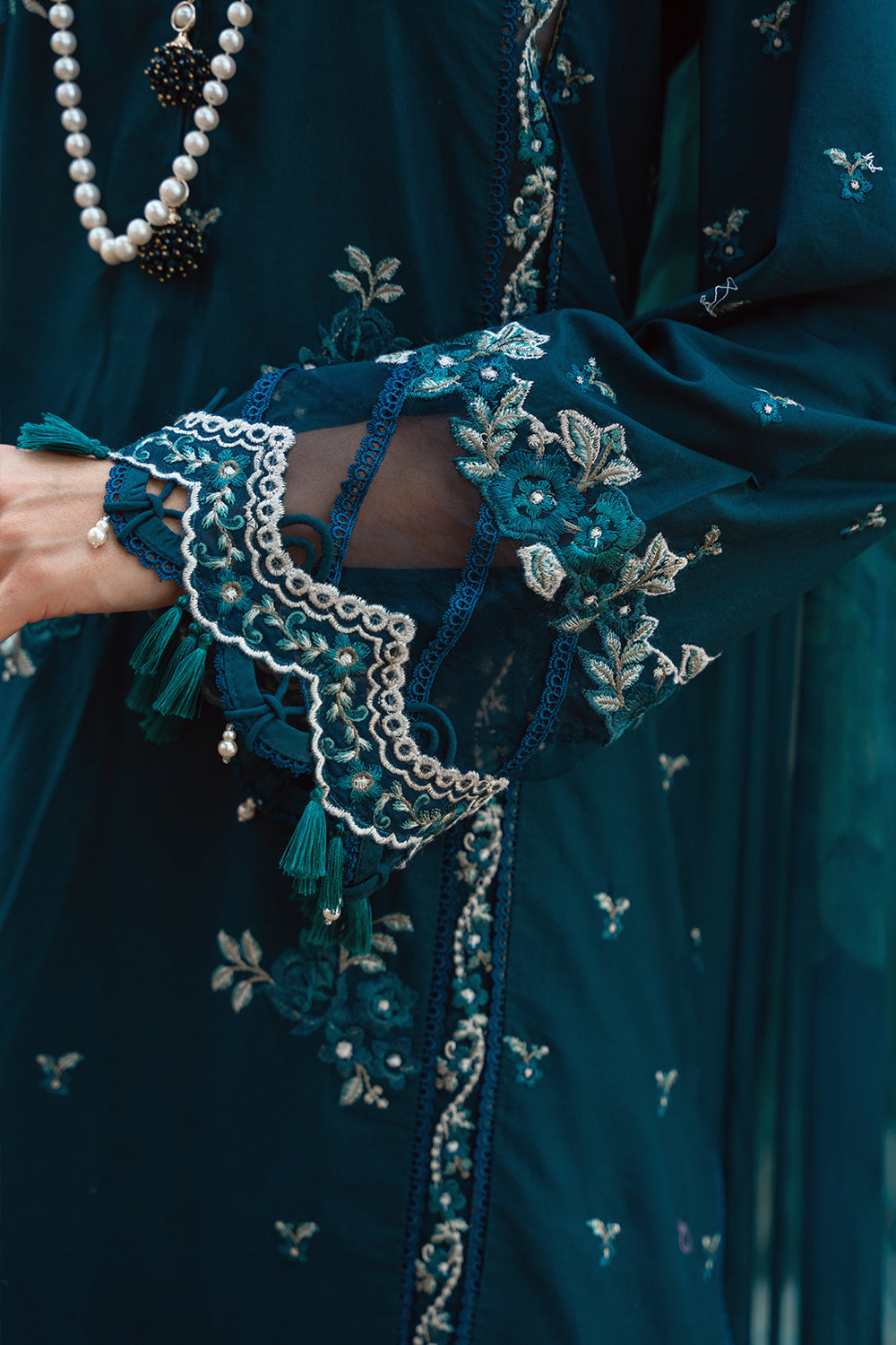- Dyed and embroidered lawn sleeves 0.6 yard