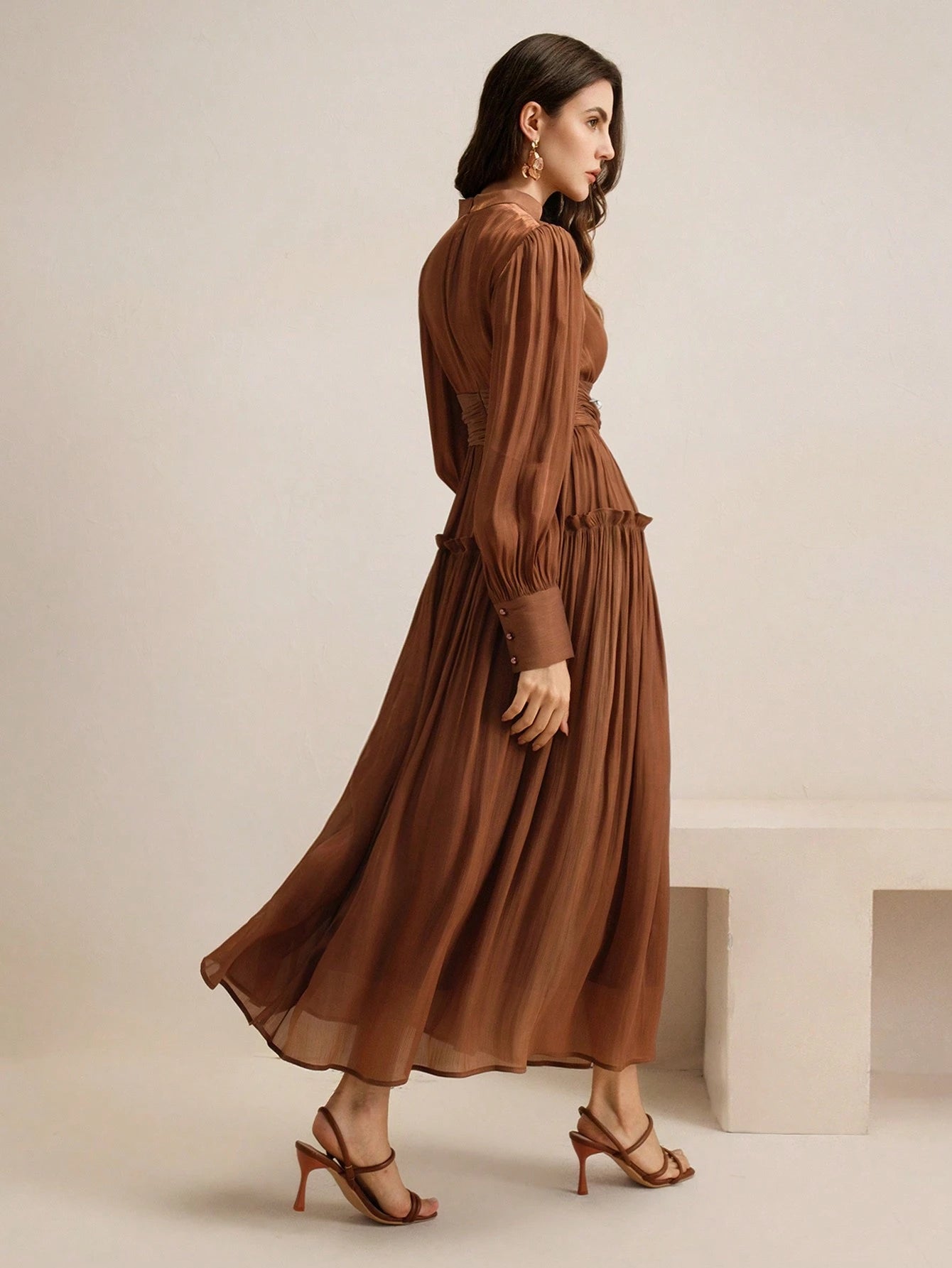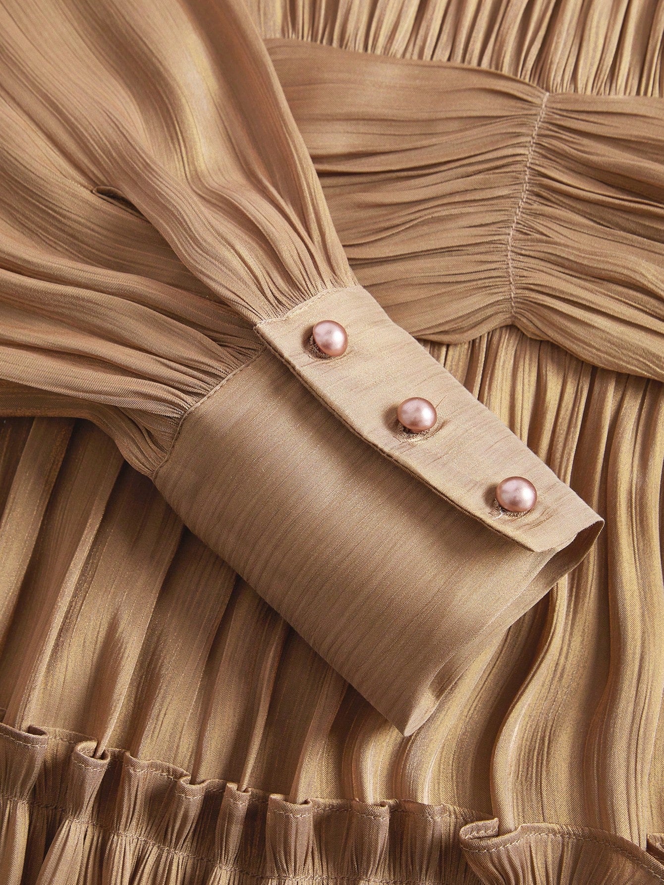 Sparkly Fabric Puffy Sleeve Waist Patchwork High Waist Dress