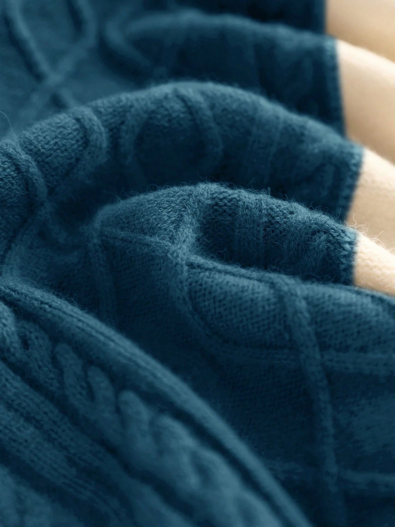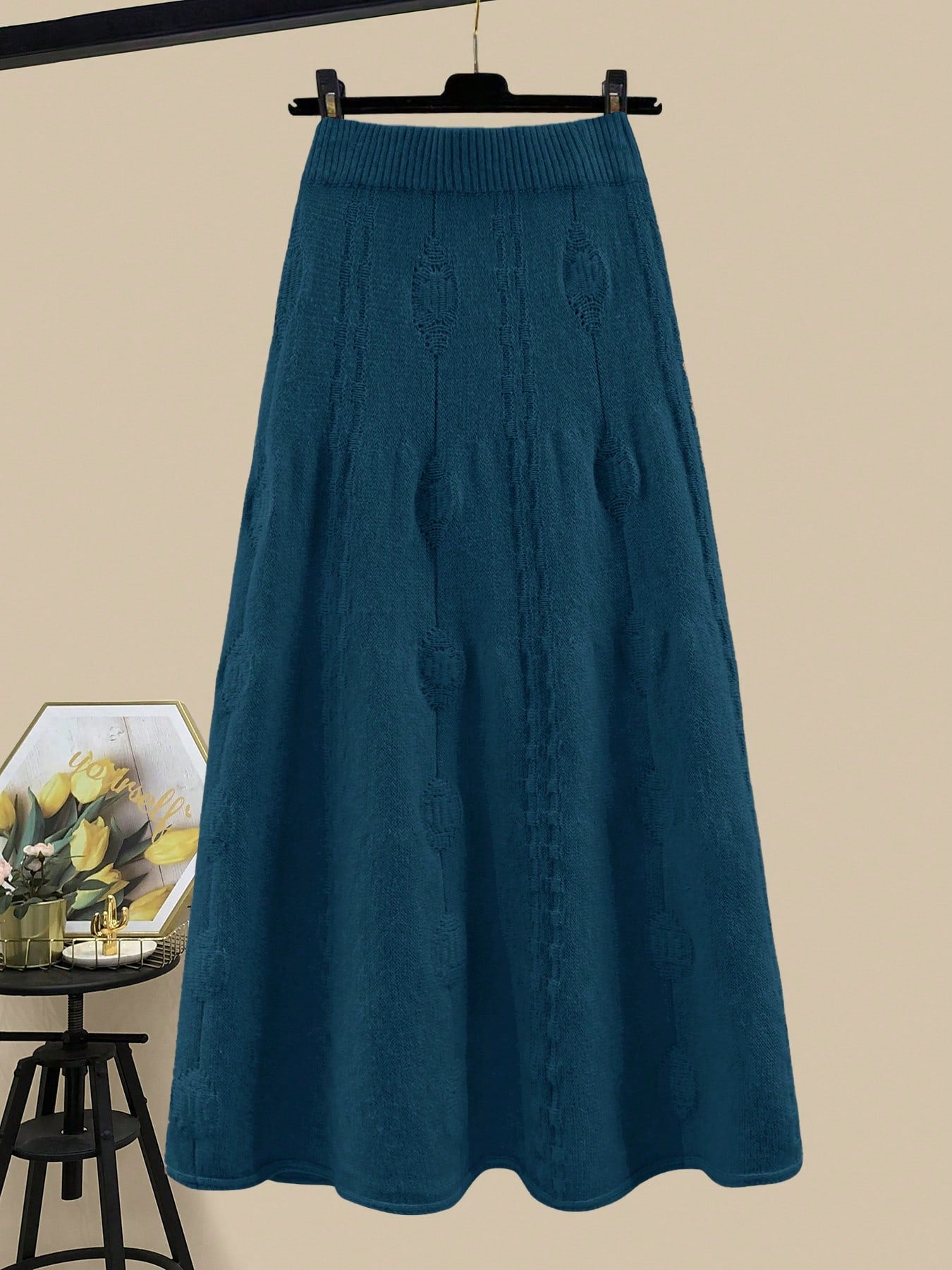 High Neck Pullover Long Sleeve Color Block Sweater & Skirt 2 Piece Set