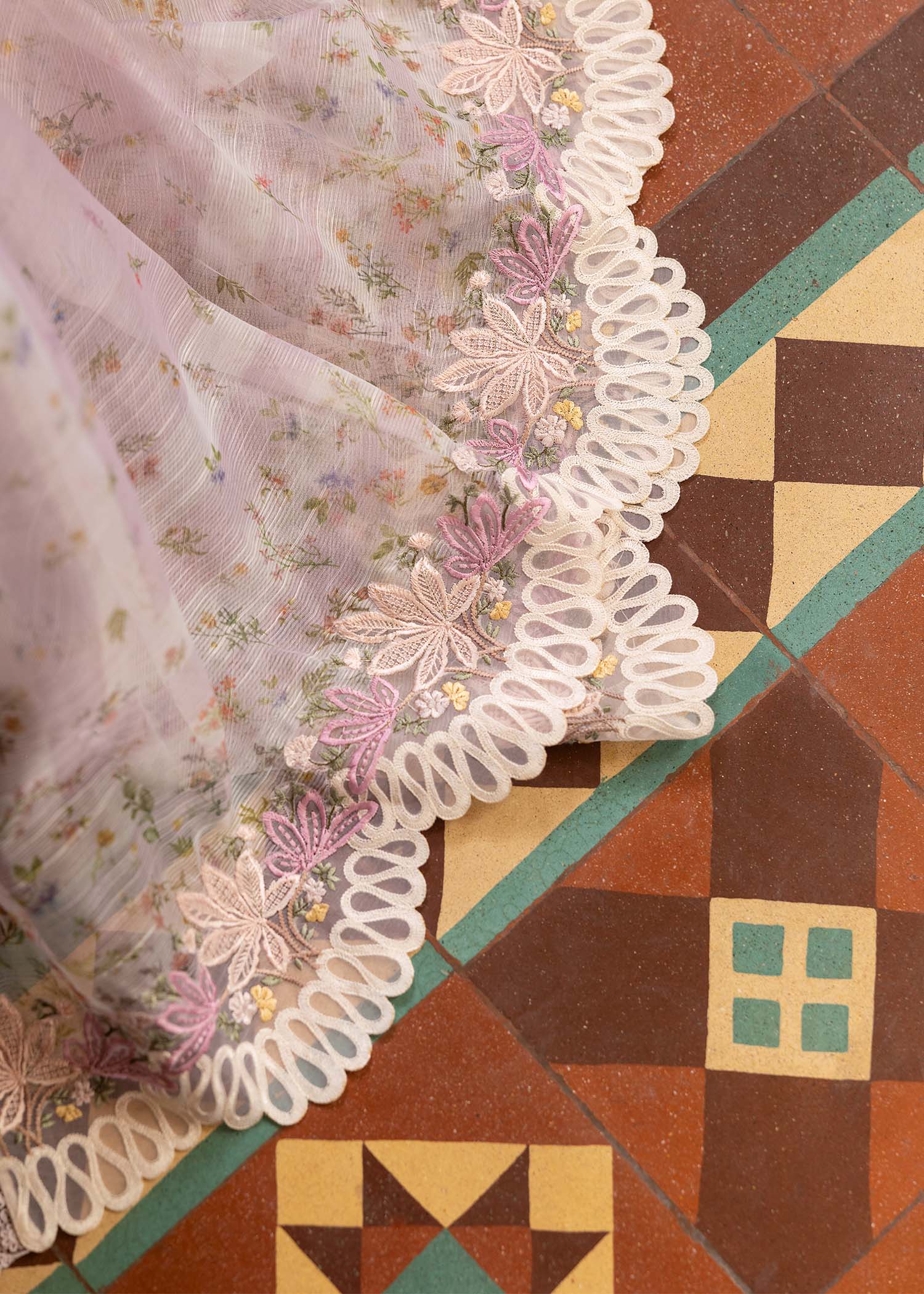 - Embroidered organza dupatta pallu border — 2.3 mtr