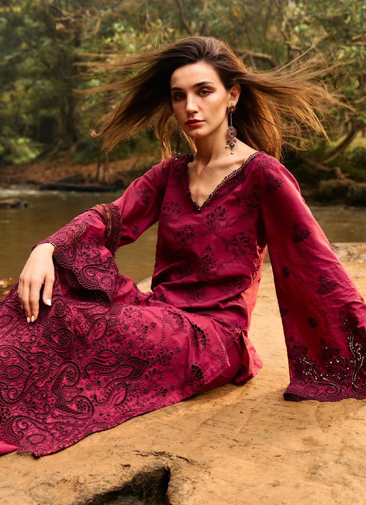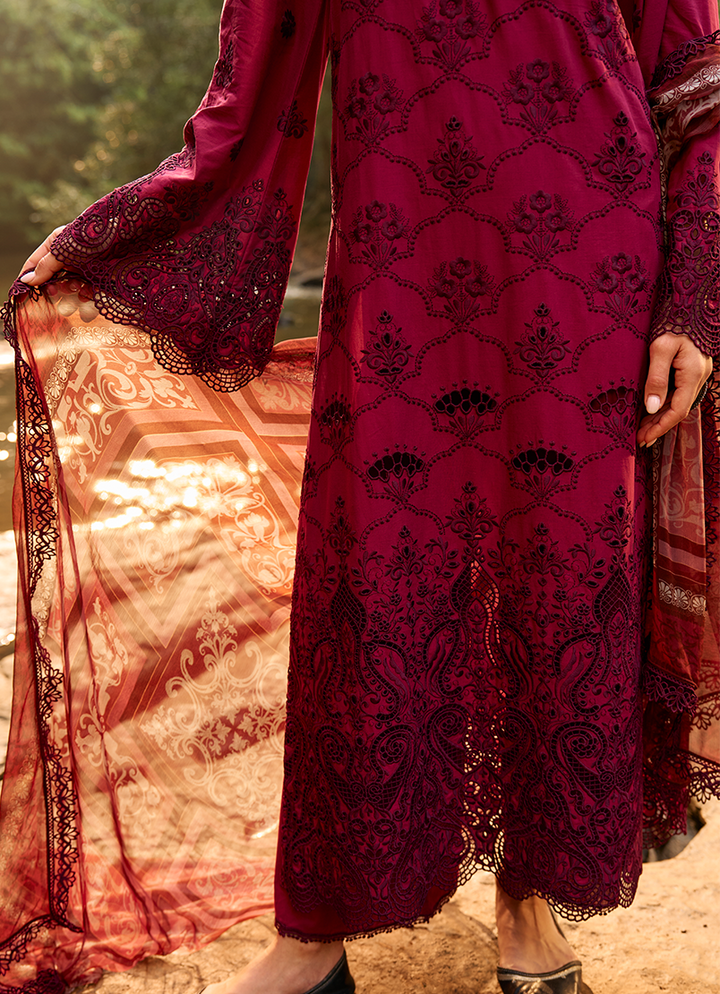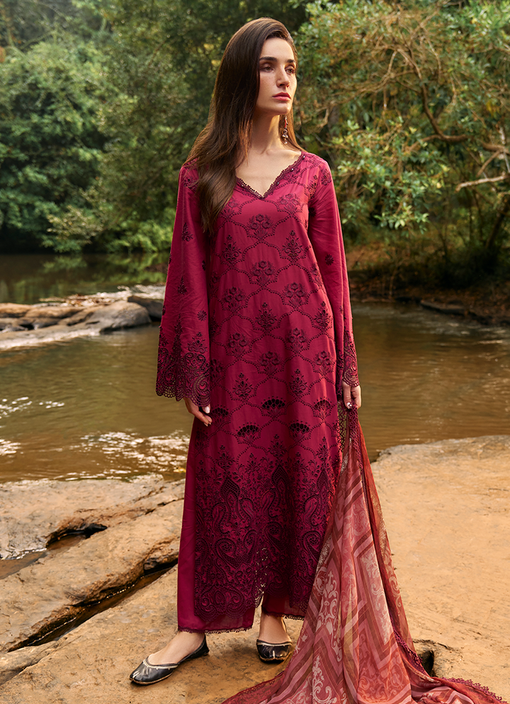 Three Piece Embroidered Suit With Digital Printed Chiffon Dupatta
