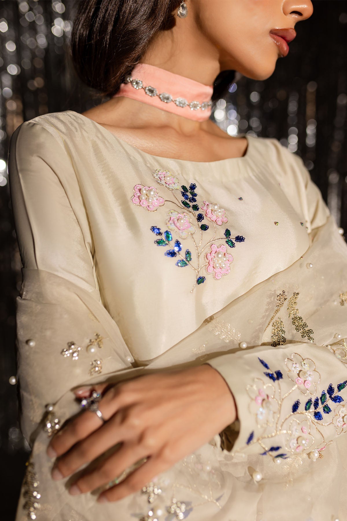 - Embroidered And Hand Embellished Silk Shirt