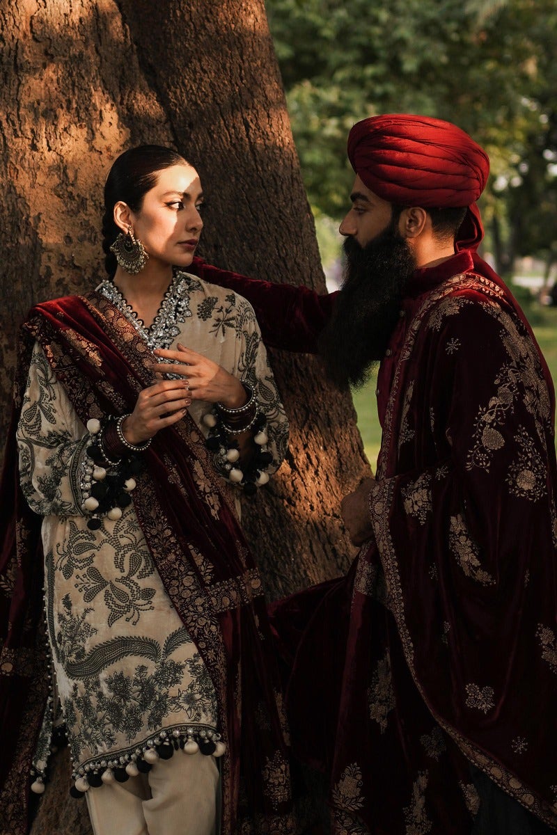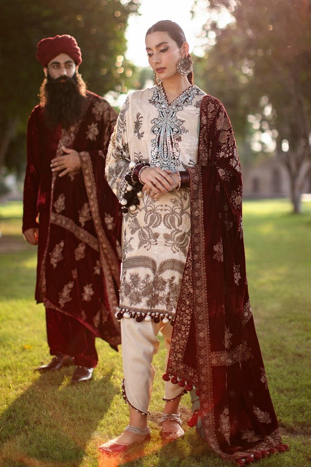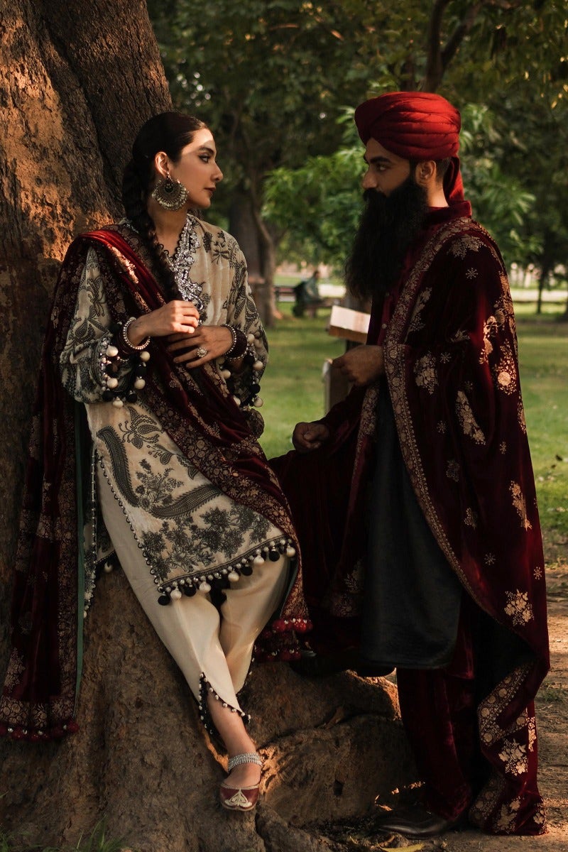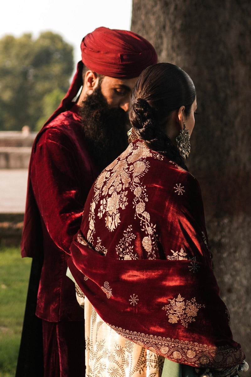 | Dyed and Gold Printed Shawl On Velvet | 2.5 Meters |