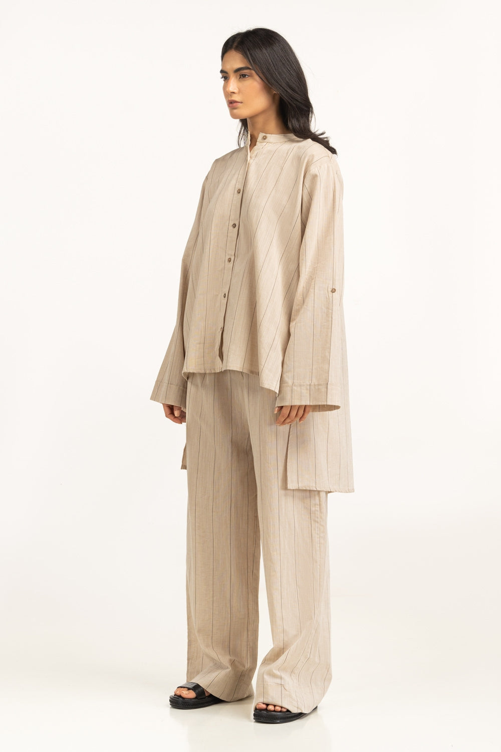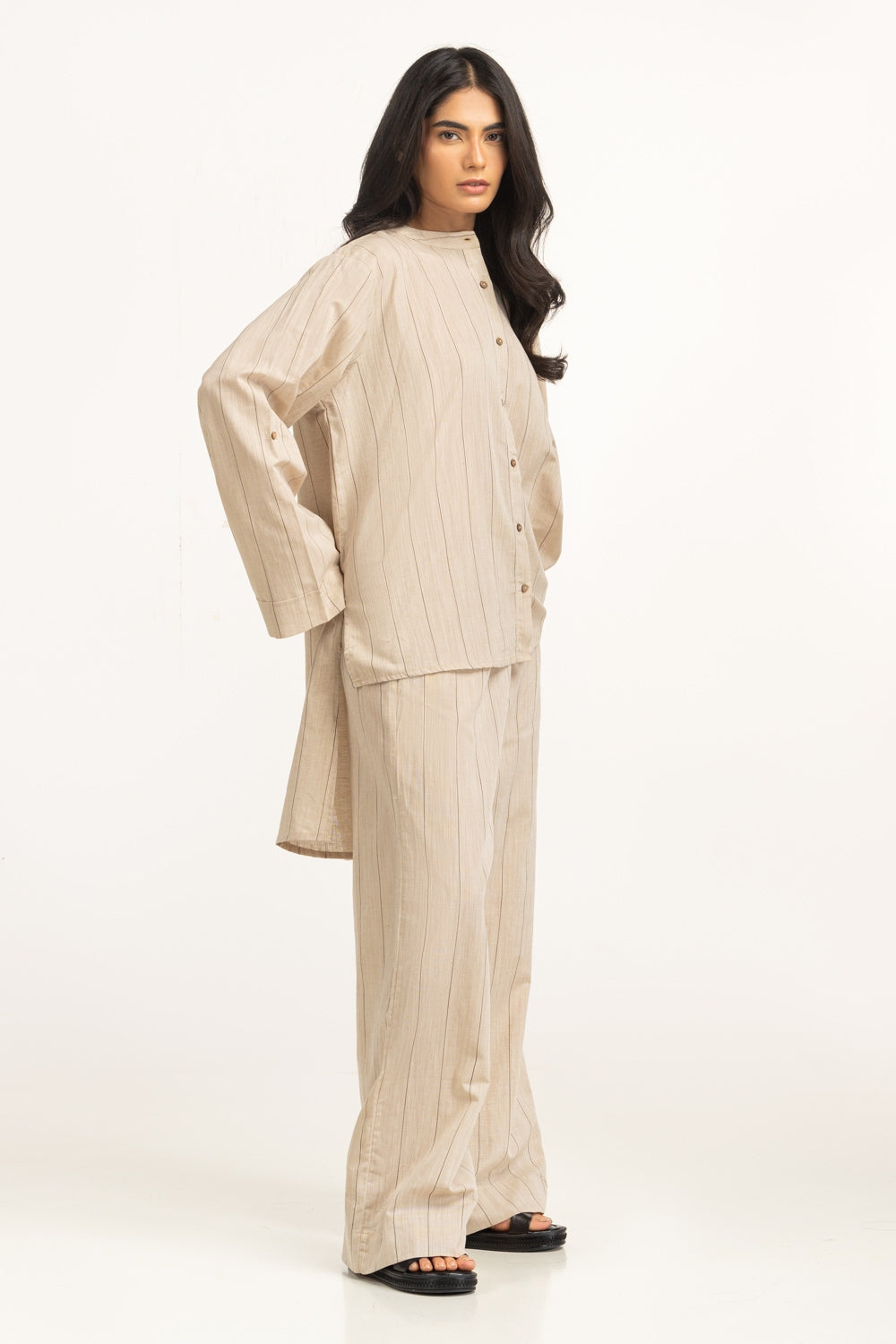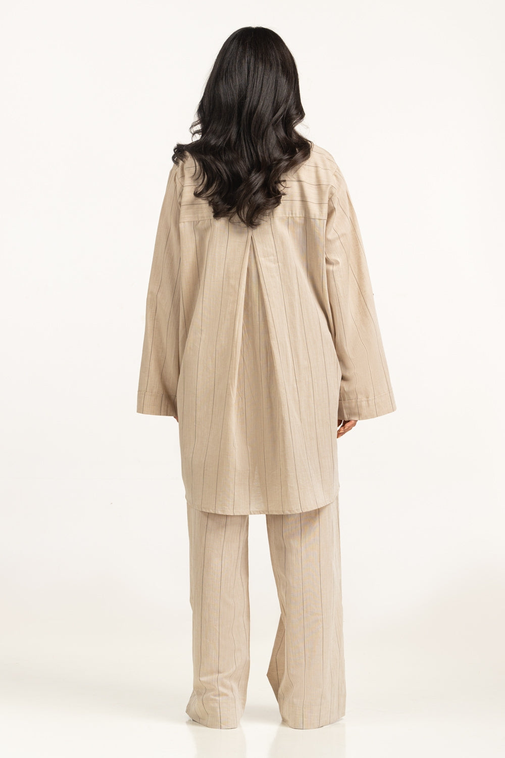 With its sharp stripes and an elongated back hem, this khaki shirt is a summer staple offering style versatility. The regular fit keeps it structured but comfortable, allowing room to move.