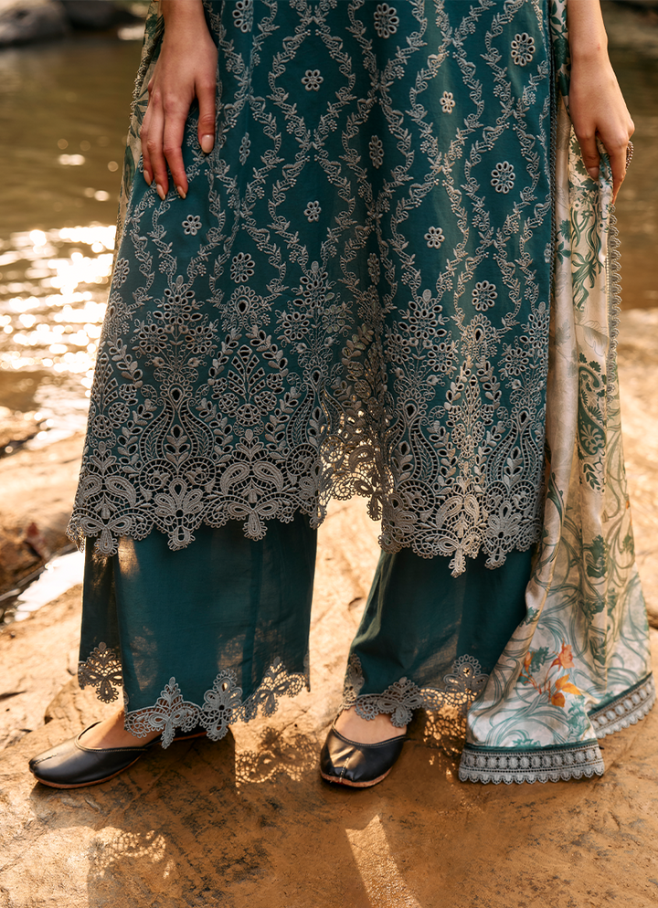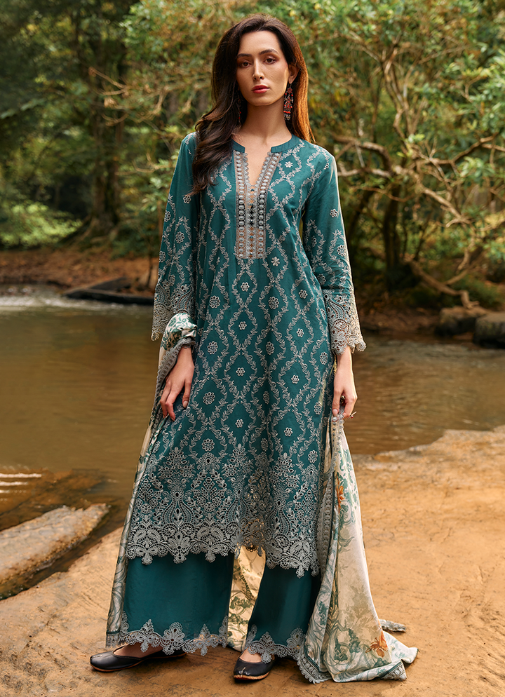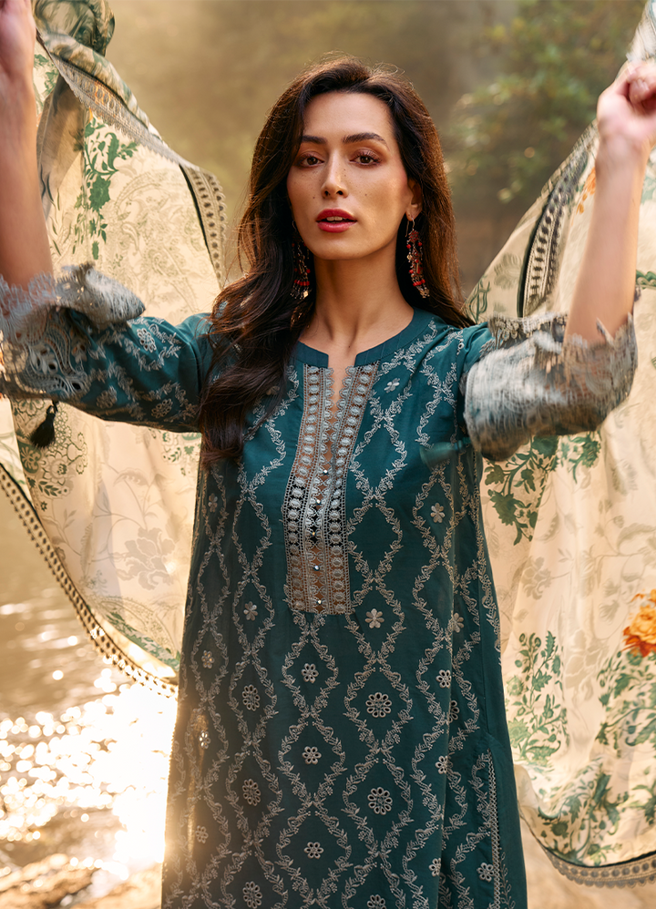 Three Piece Embroidered Suit With Digital Printed Silk Dupatta