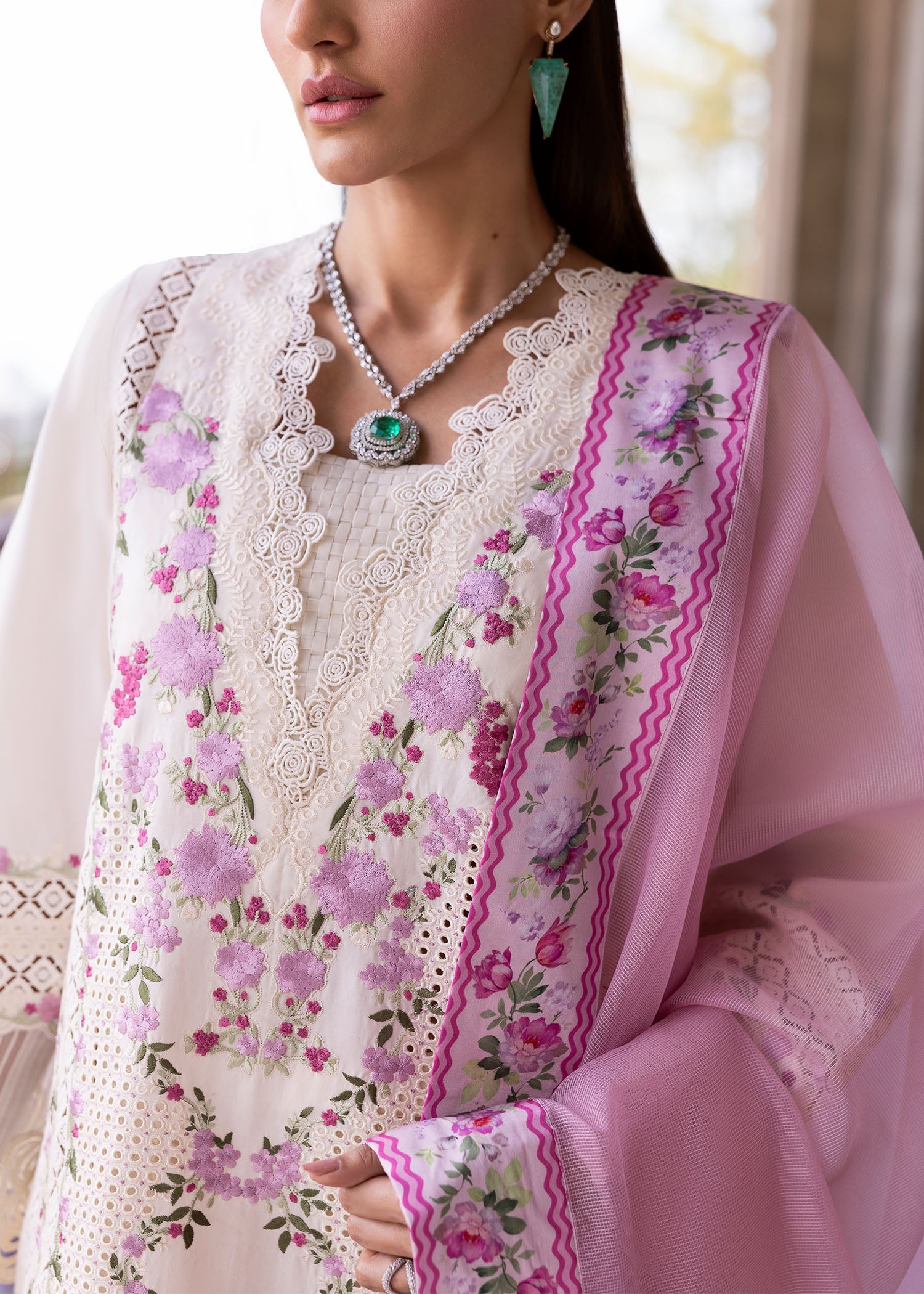 The outfit is paired with a three tone dupatta PRE-STITCHED in shades of lilac, mauve and mint finished with a silk printed border. This ensemble is a perfect symphony of statement and beauty!
