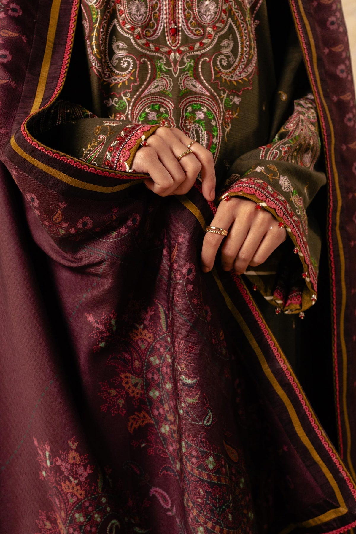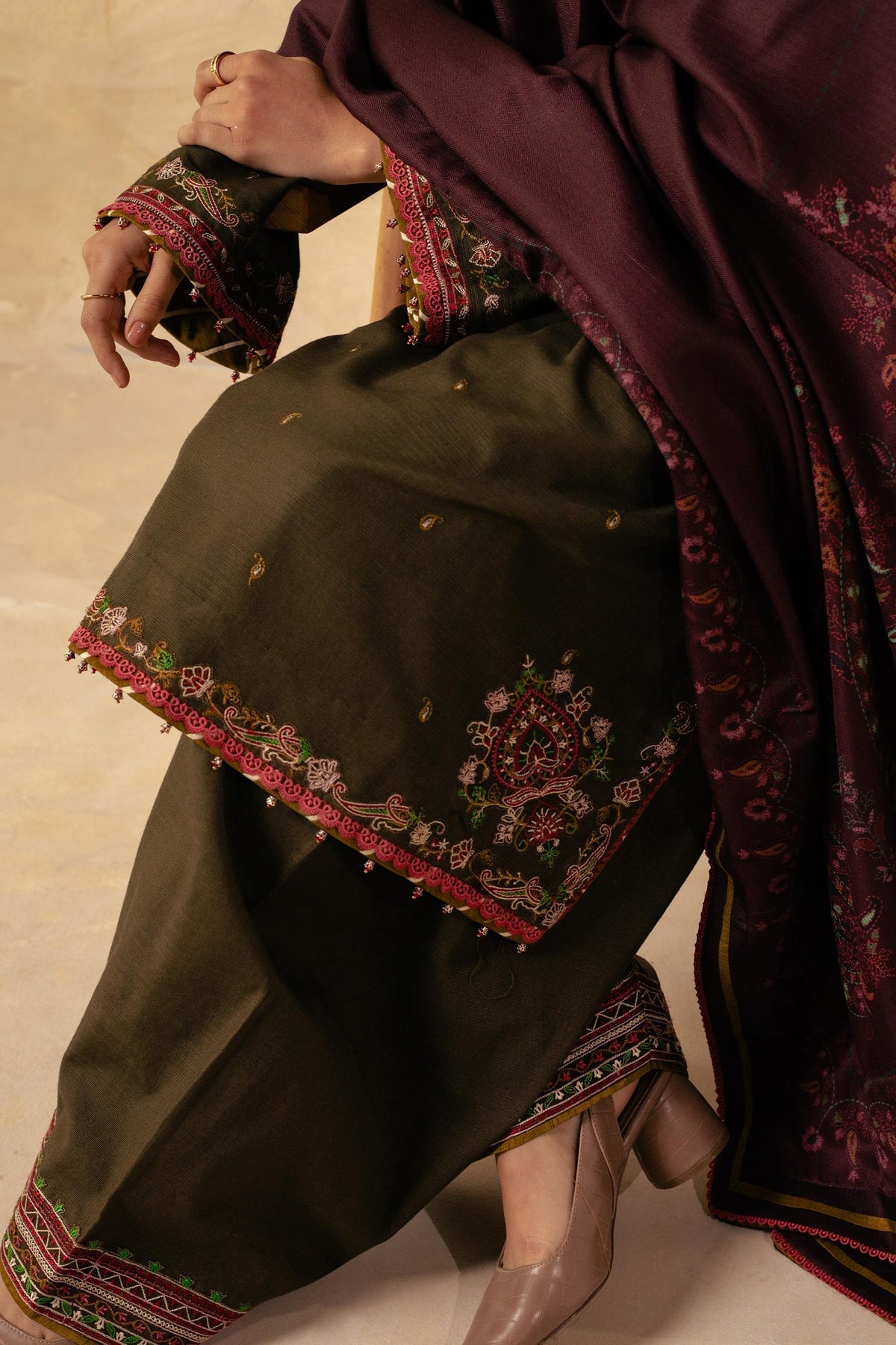 Embroidered Sleeve on Khaddar 1.38 Yard
